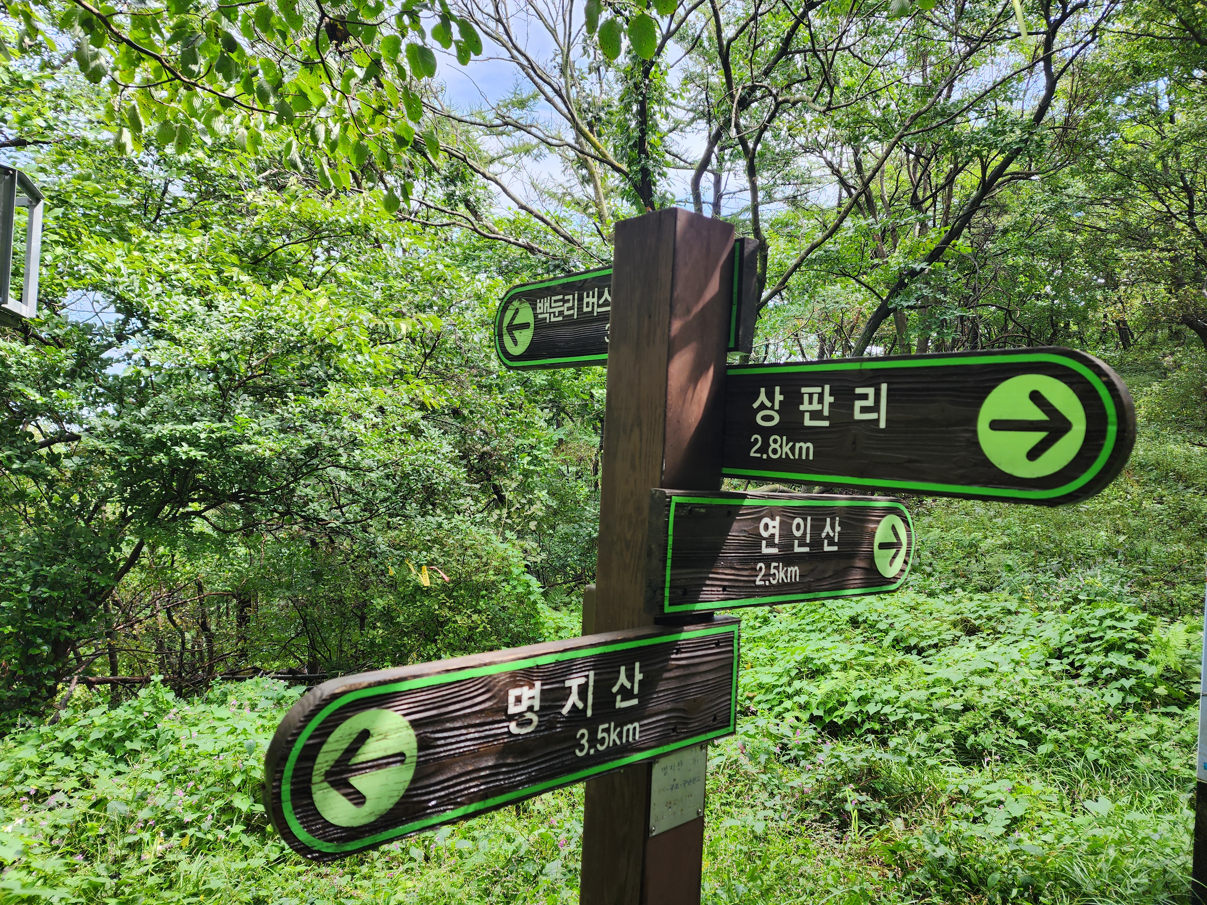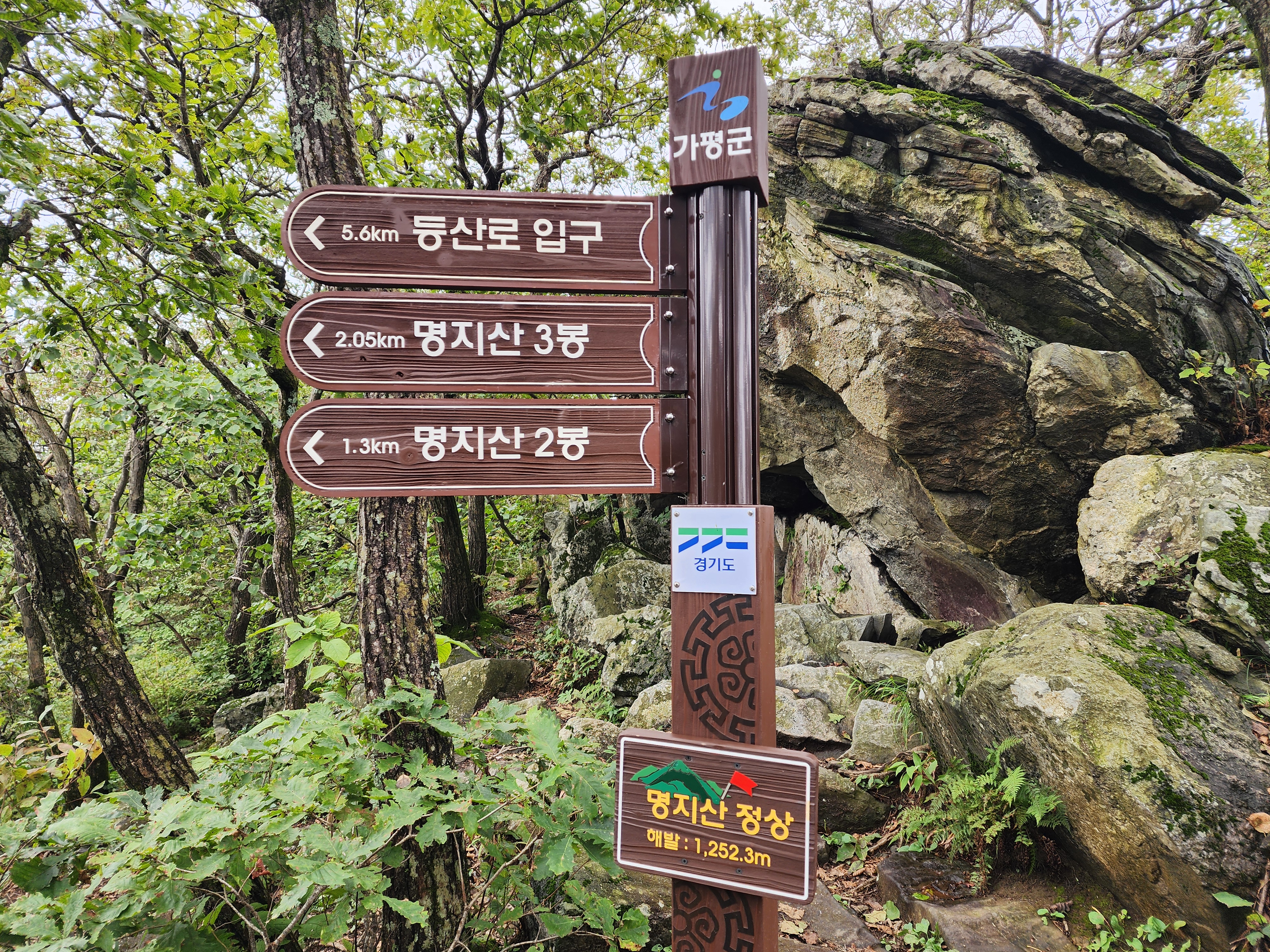 참고로 명지산 정상에서 바로 내리막 계단이 보이는 곳으로 내려왔는데, 제 생각엔 2봉쪽으로 살짝 돌아가 명지산 초입 5.4km 방향으로 내려 가는 게 조금 더 나을 듯 합니다.