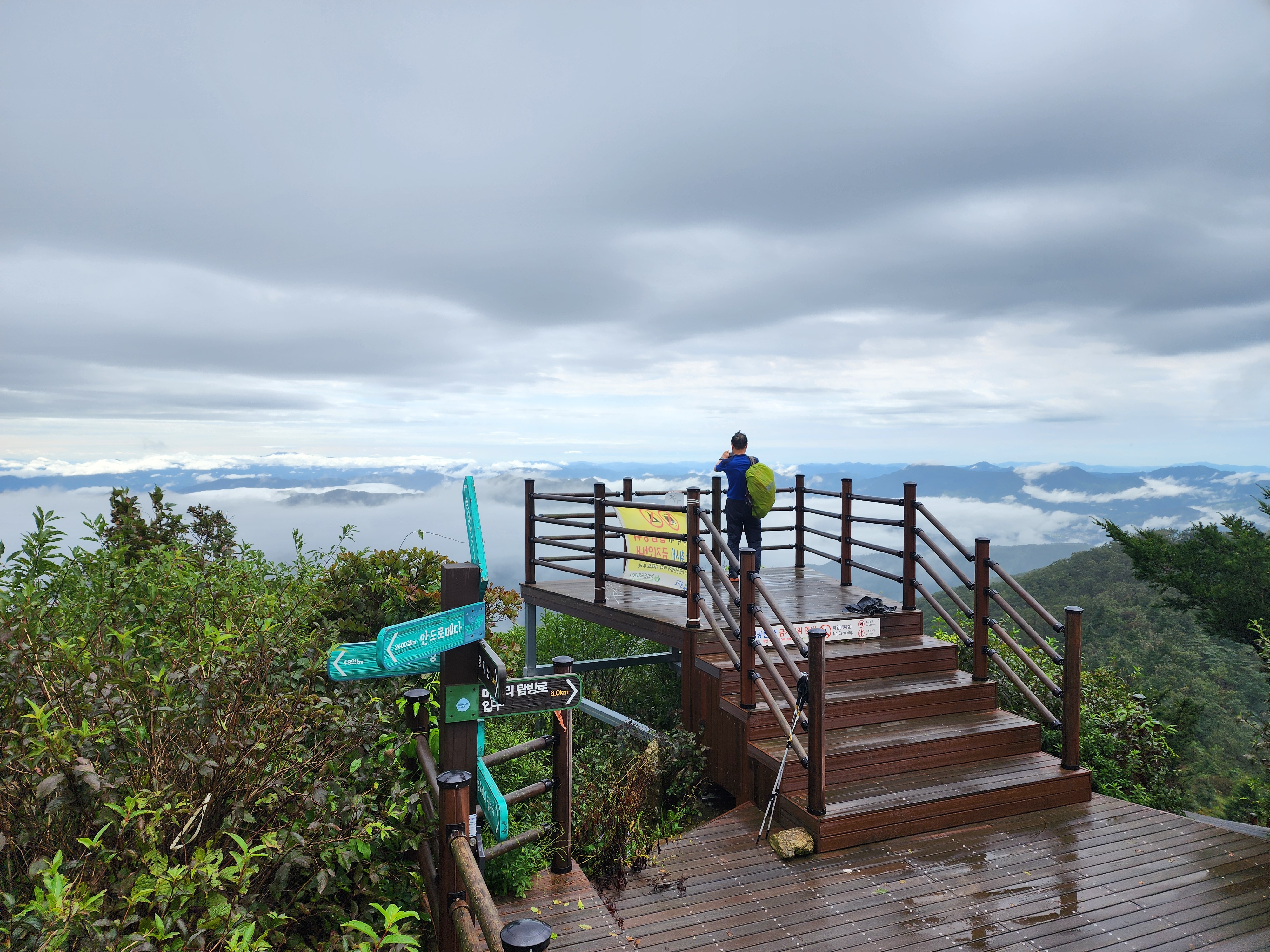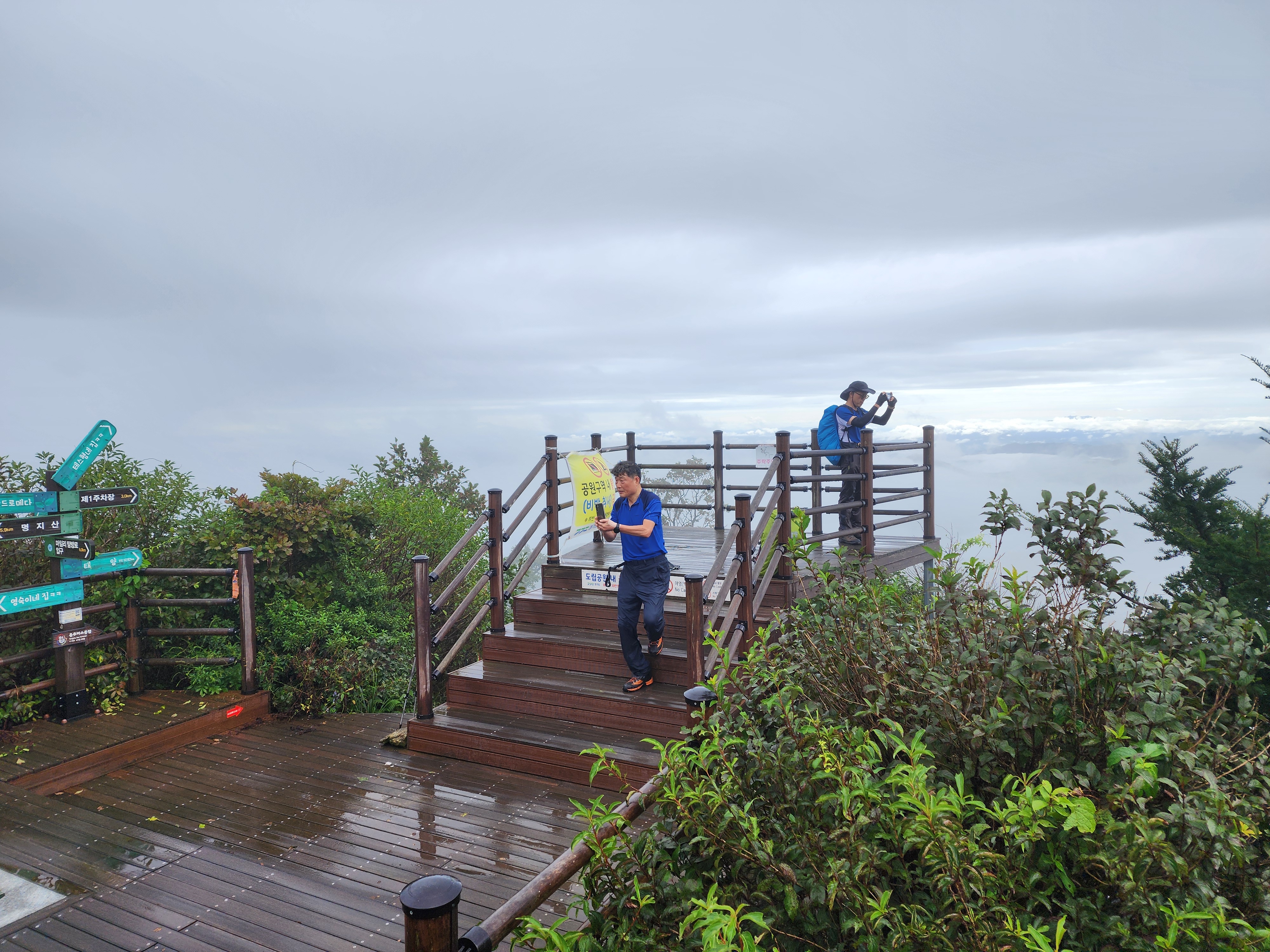 정상에 도착하니 비가 그치고 하늘이 서서히 열린다.