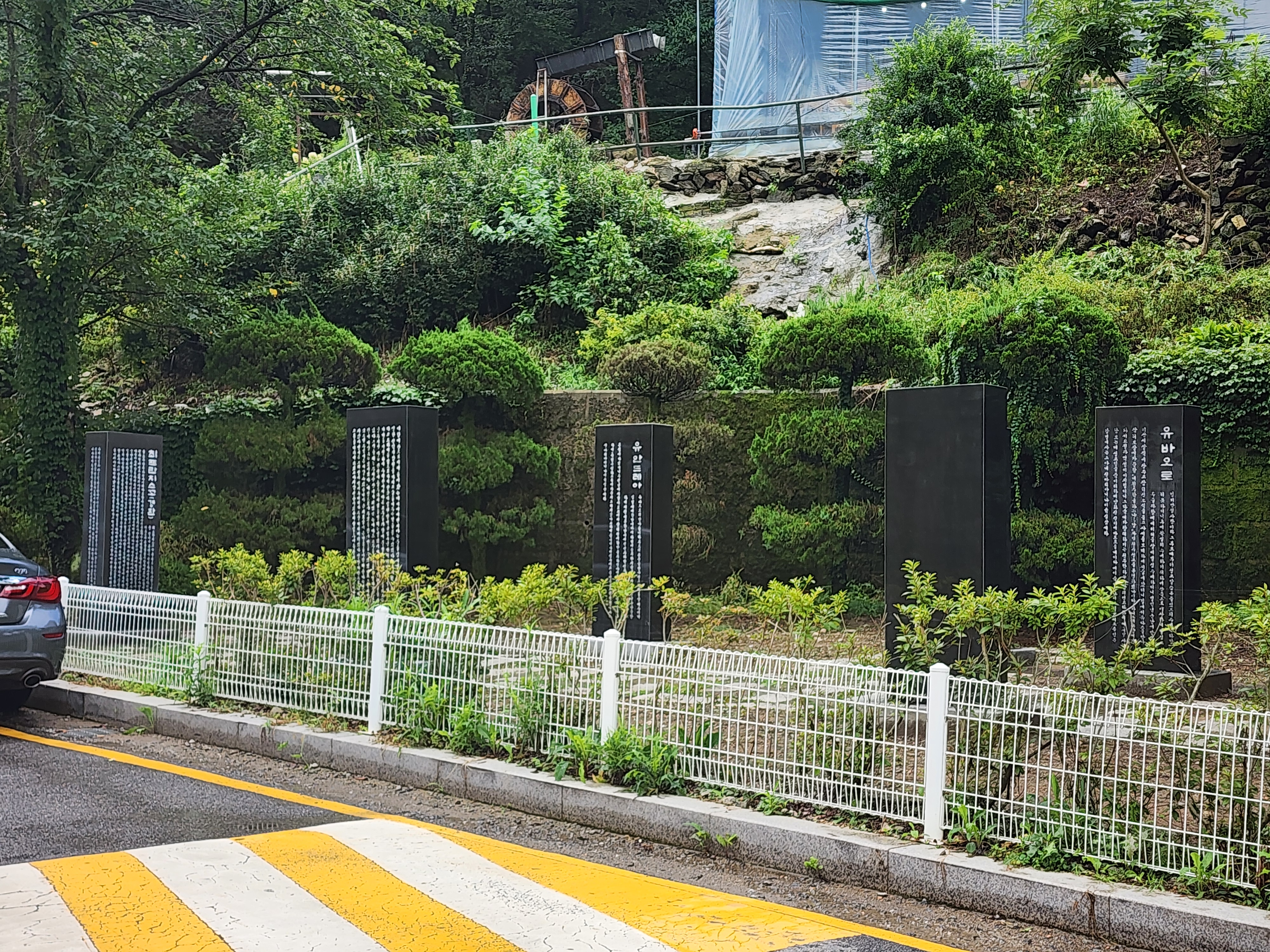 먼저 주차장에서 이동해 병목안 캠핑장으로 올라갑니다. 캠핑장을 지나치면서 석탑을 통과합니다.
