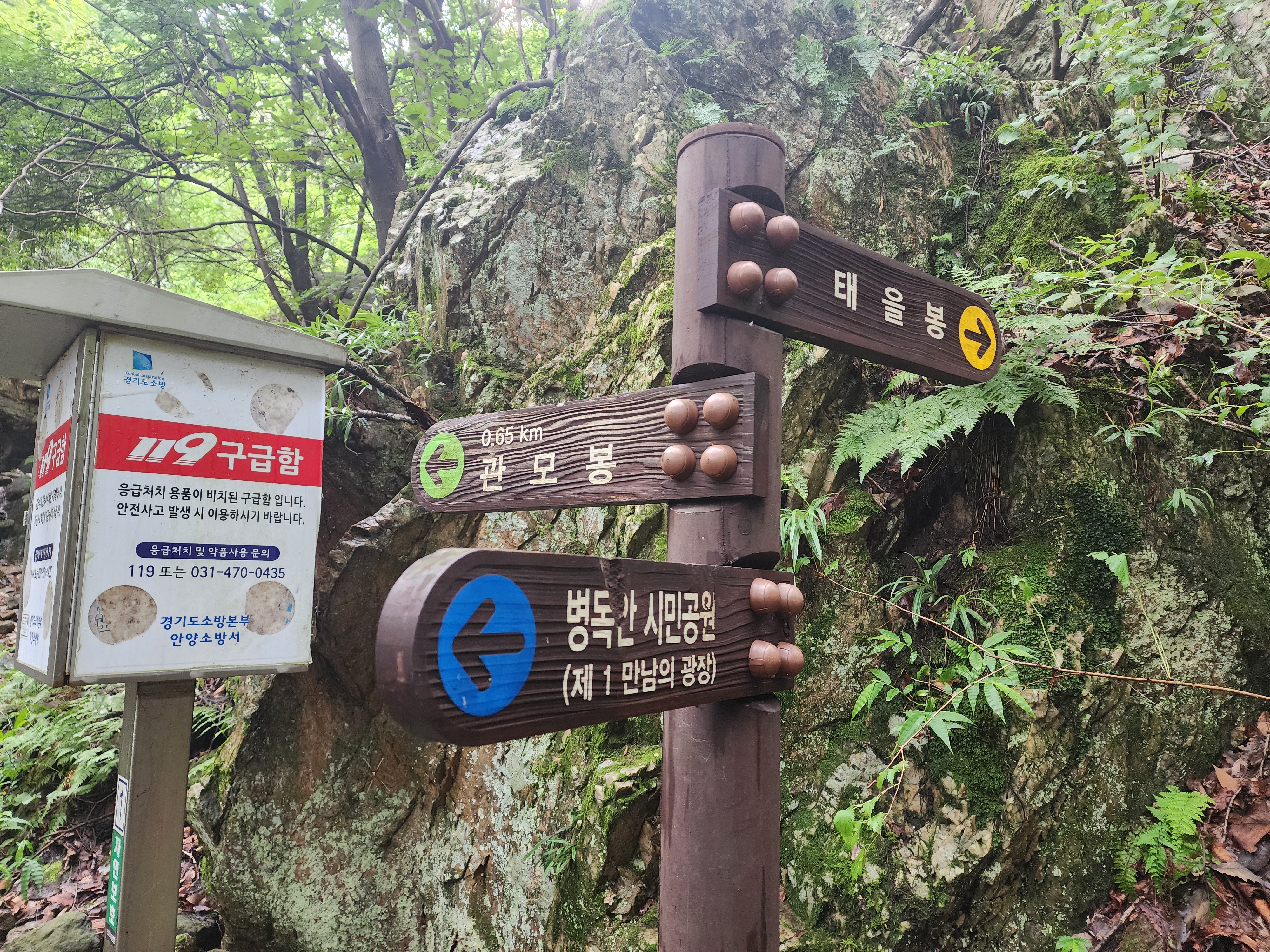 병목안캠핑장 – 관모봉(冠帽峰, 426m) - 태을봉(太乙峰, 489m) - 병풍바위 - 슬기봉(469m) – 수암봉(398m)으로 종주를 하려했으나 지인과의 점심약속으로 인해 병풍바위를 지나 슬기봉으로 향하다가 우측으로 꺾어서 다시 태을봉 방향으로 오다가 수리산