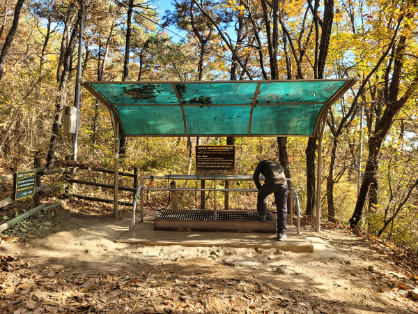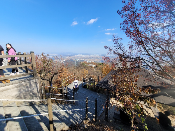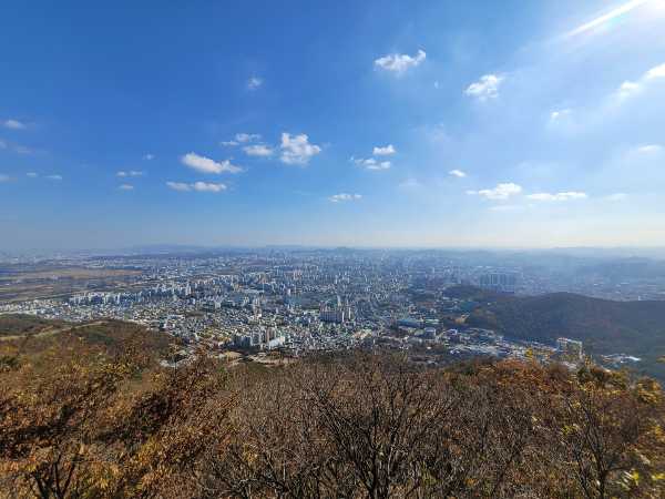 11월이 시작된 계양산은 이미 가을이 깊어 낙엽이 많이 떨어지거나 빛을 바랬다. 그나마 계산역에서 계양산쪽으로 놓여있는 큰 길가 양쪽 은행나무가 풍성한 노란잎으로 화사하게 맞이한다.