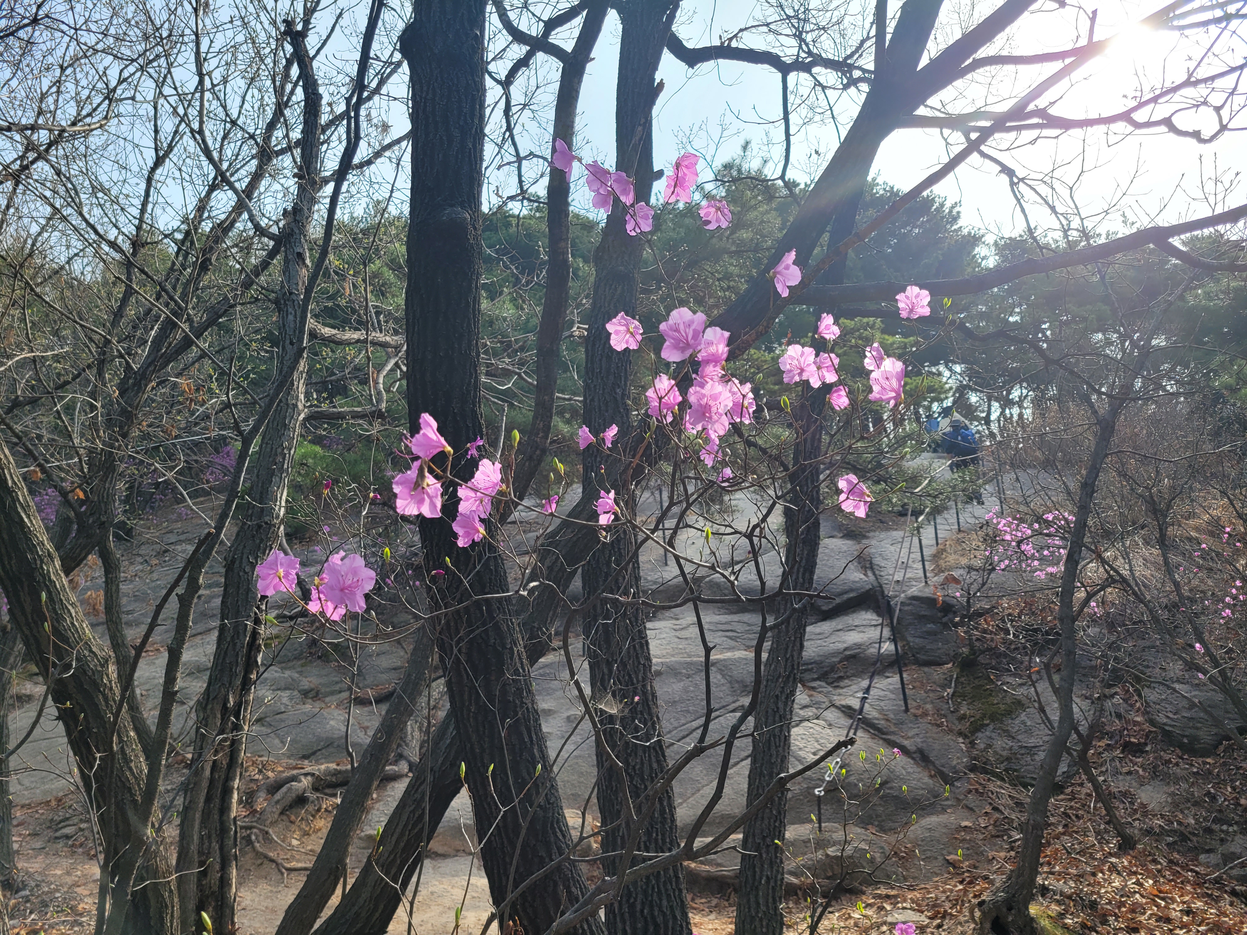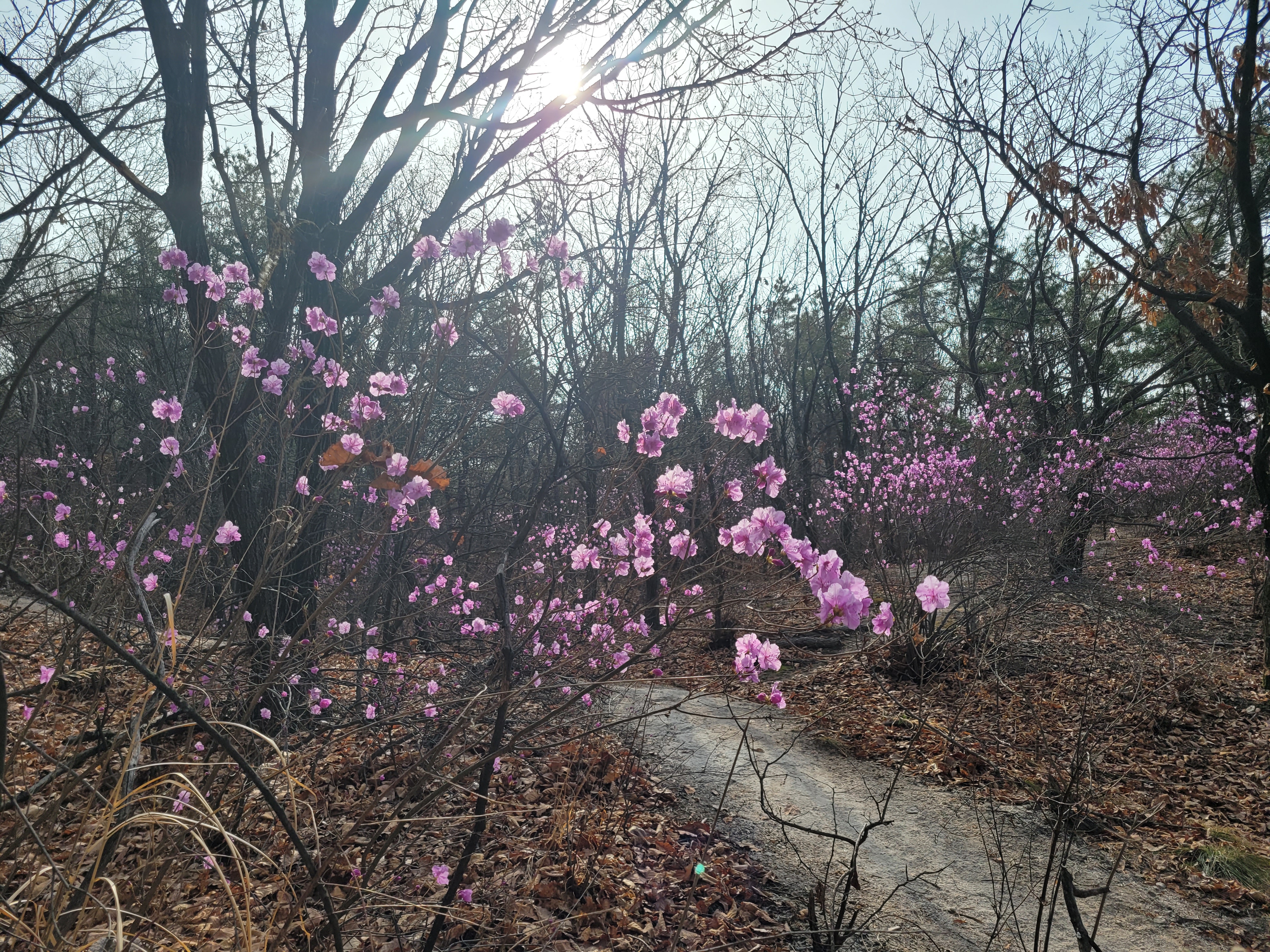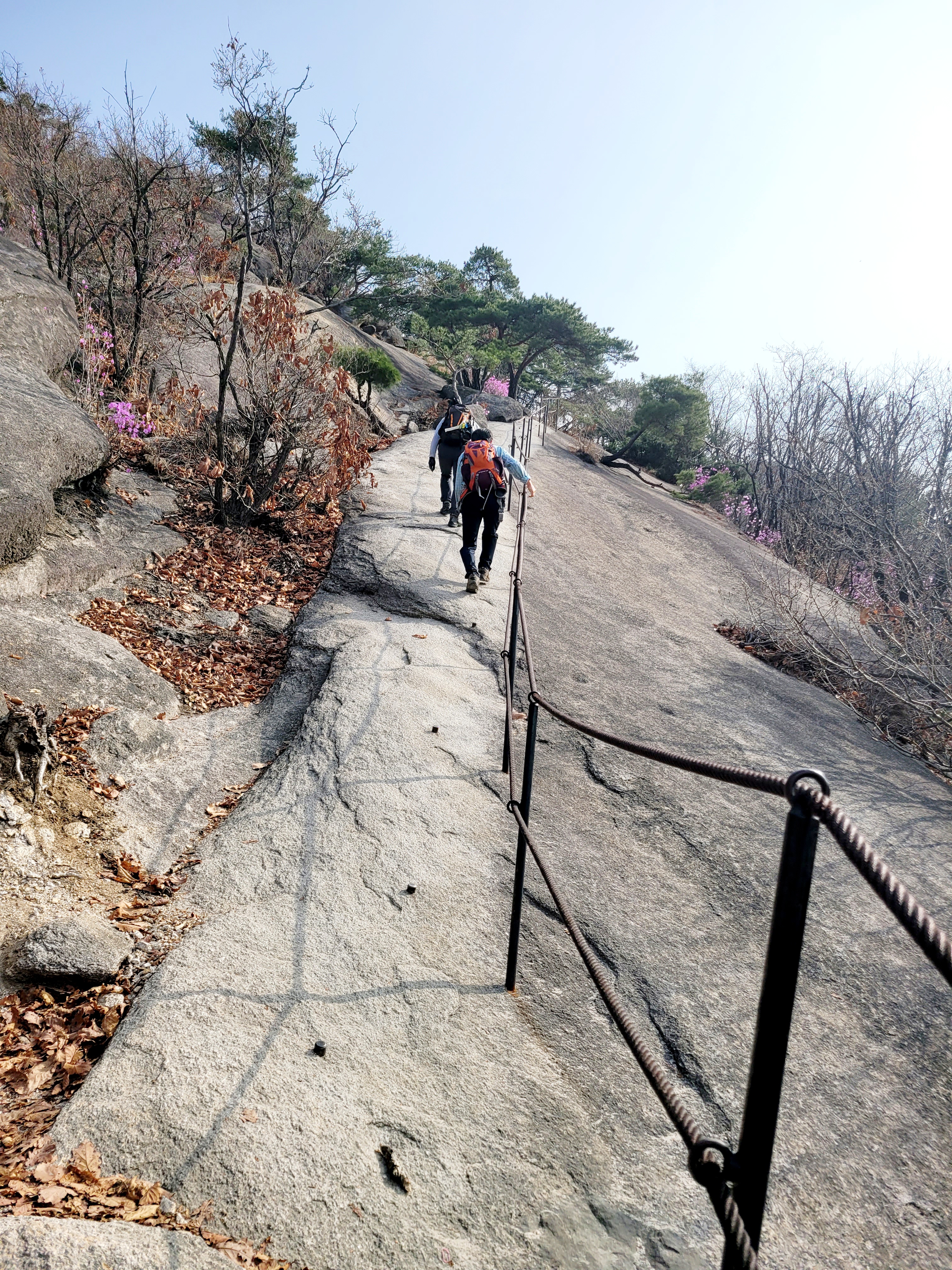 초입부터 불암정까지 전달래가 군락을 이루고 있어 눈이 즐거운 산행이 시작되었고 불암정을 지나면서는 멀리 북한산과 우측 도봉산이 한눈에 펼쳐진 전경이 시선을 사로잡고 암벽으로 줄을 잡고 오르는 코스 또한 재미가 있네요. 정상 아래 석장봉에서 바라보는 풍경 또한 멋집니다.