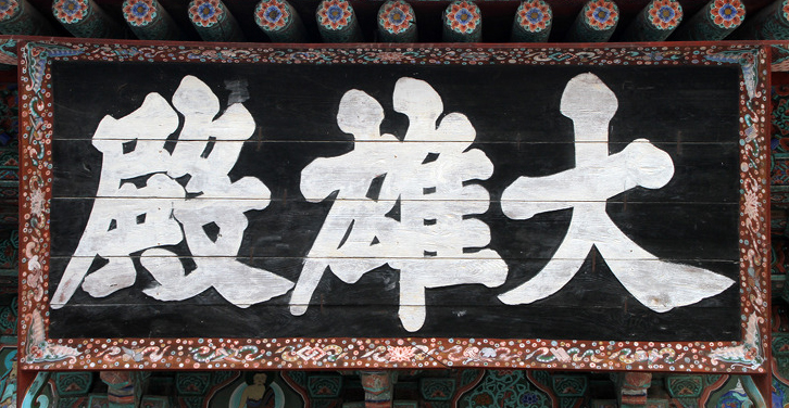 위에서부터 사진이 경주 불국사 대웅전 편액, 아래가 칠곡 송림사 대웅전 편액, 보은 법주사 대웅보전 편액