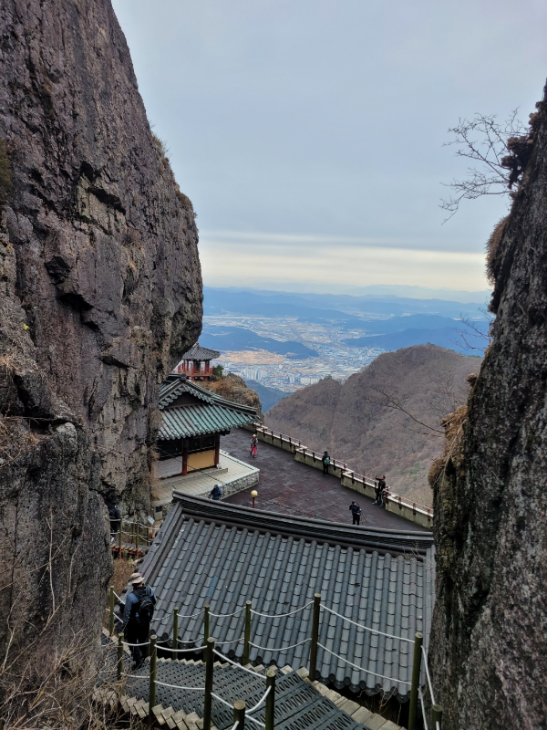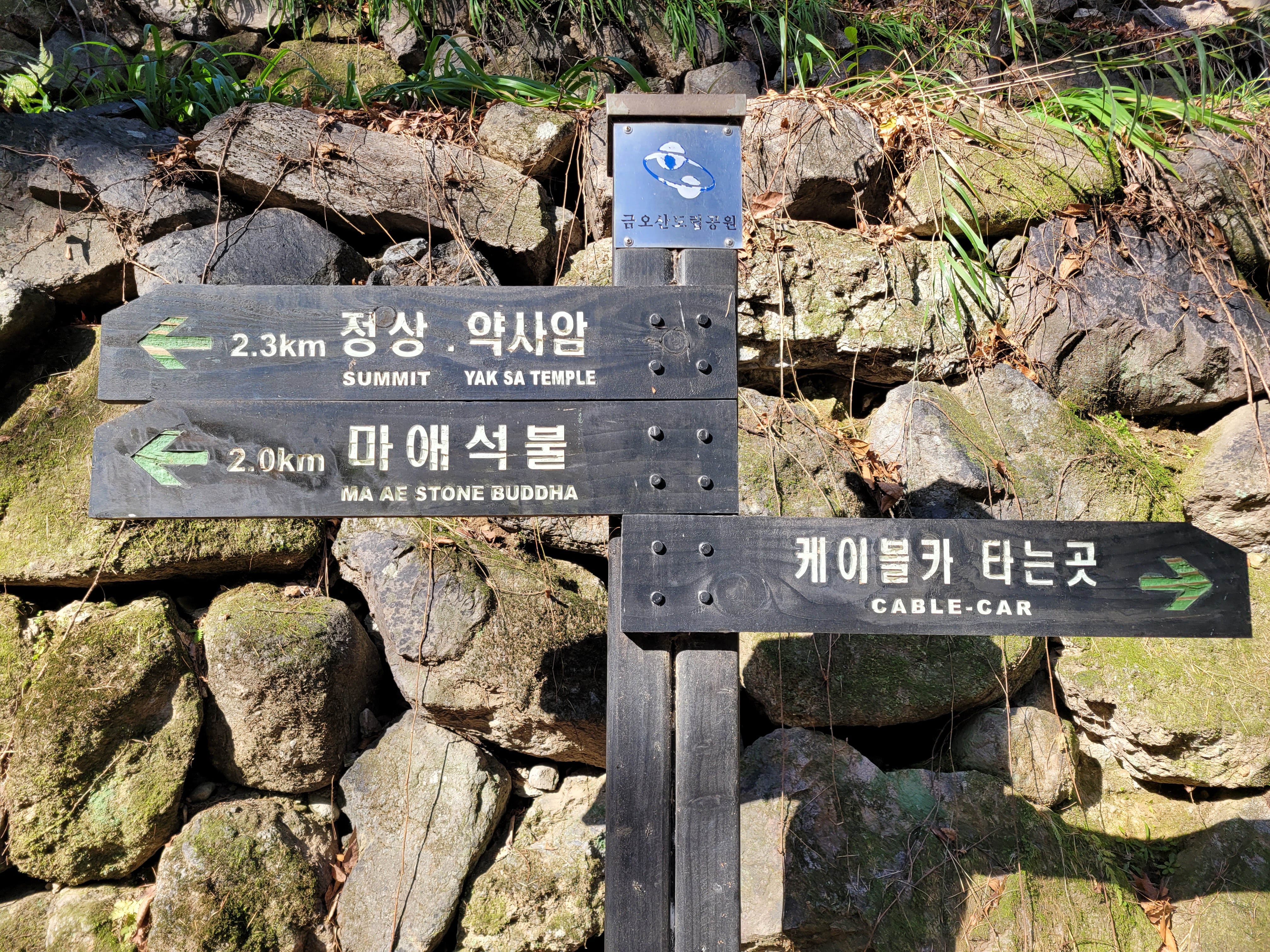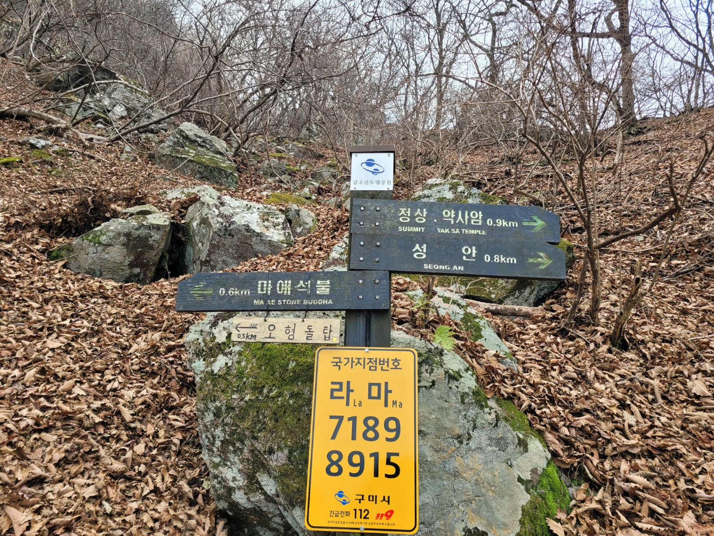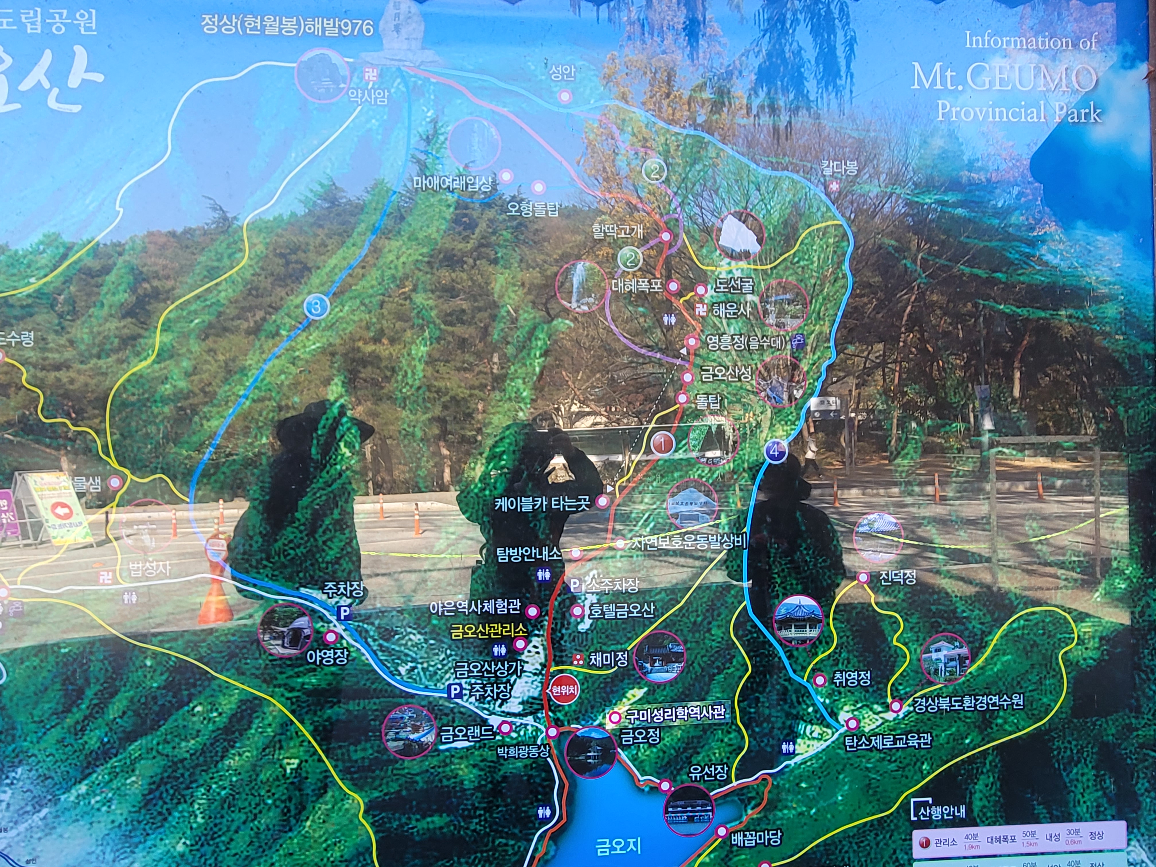 ㅇ 들머리 : 금오산 공영주차장 - 금오산 케이블카 - 대혜폭포 - 약사암 - 금오산정상 현월봉(976m) - 약사암 - 대혜폭포 - 도선굴 - 해운사 - 금오산성(대혜문) - 금오산공영주차장 원점회귀 (약 7.35km/4시간 15분)
