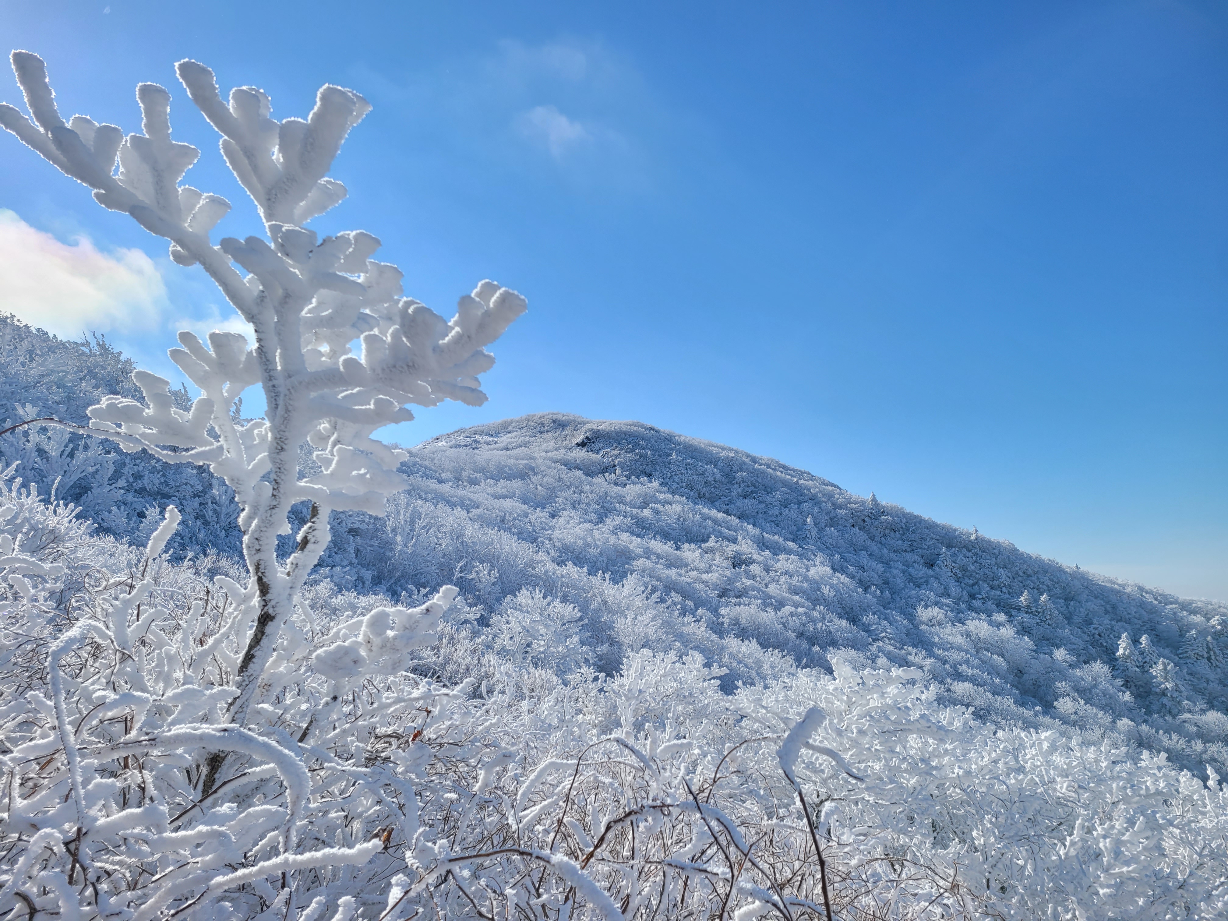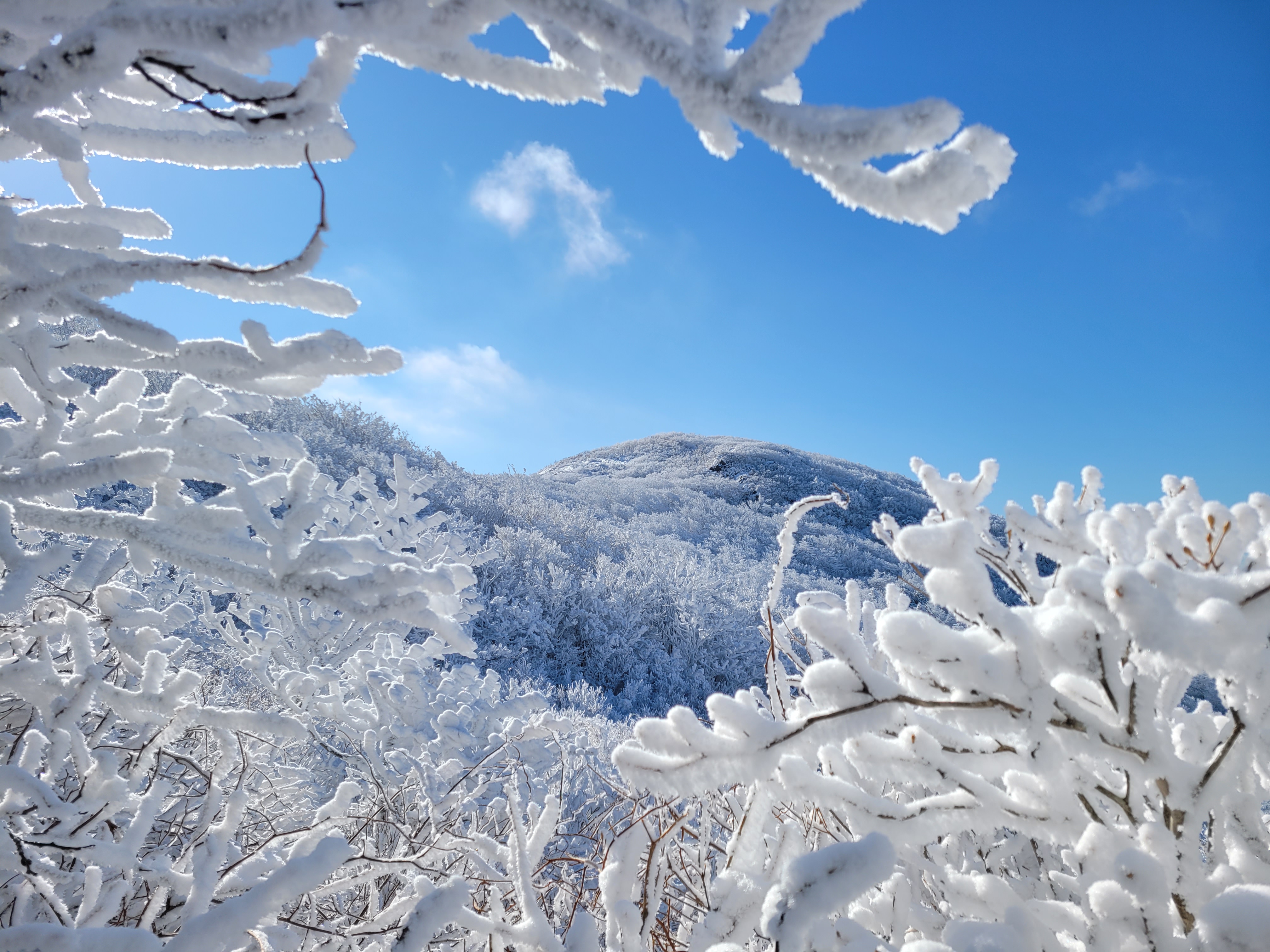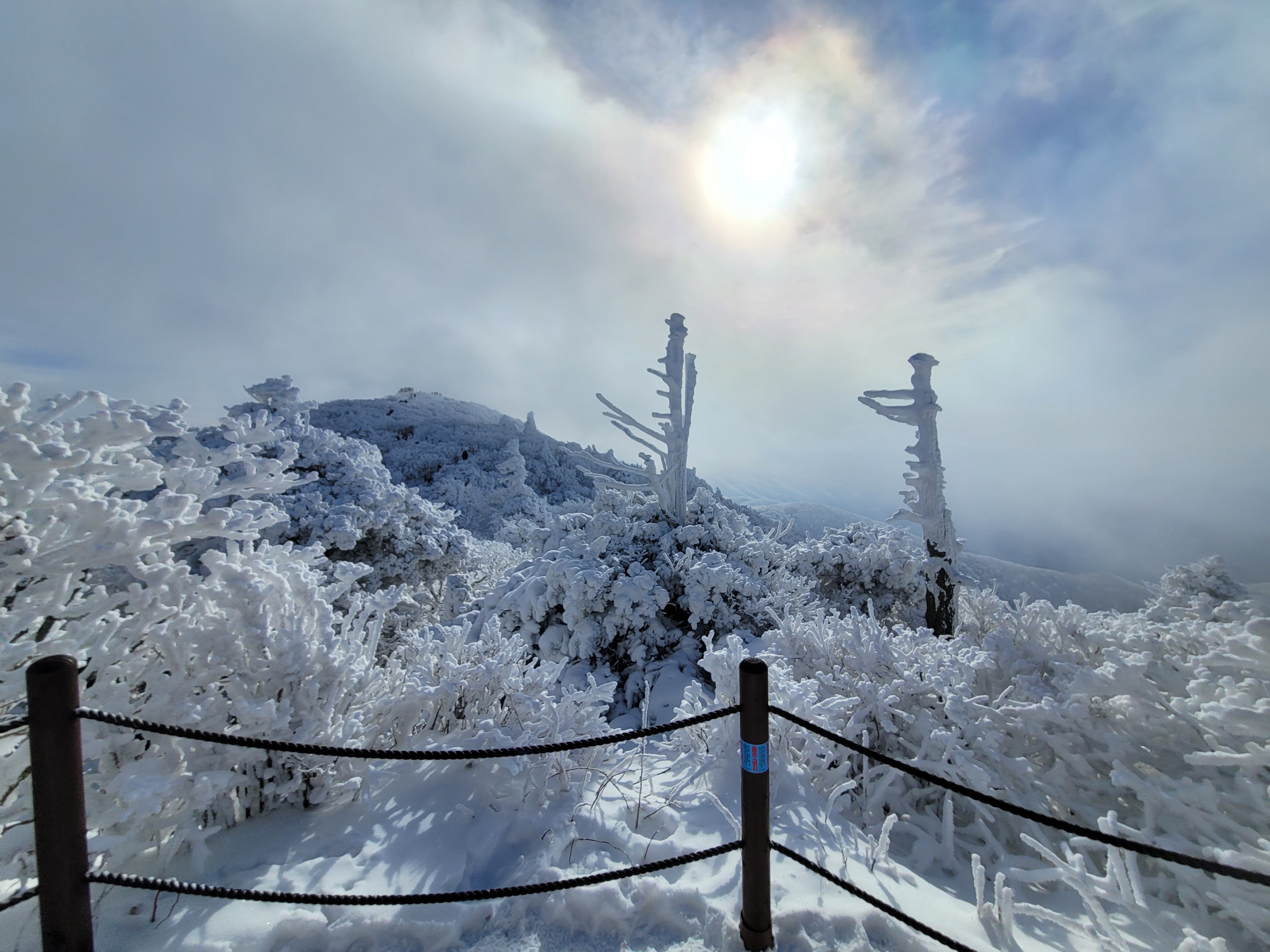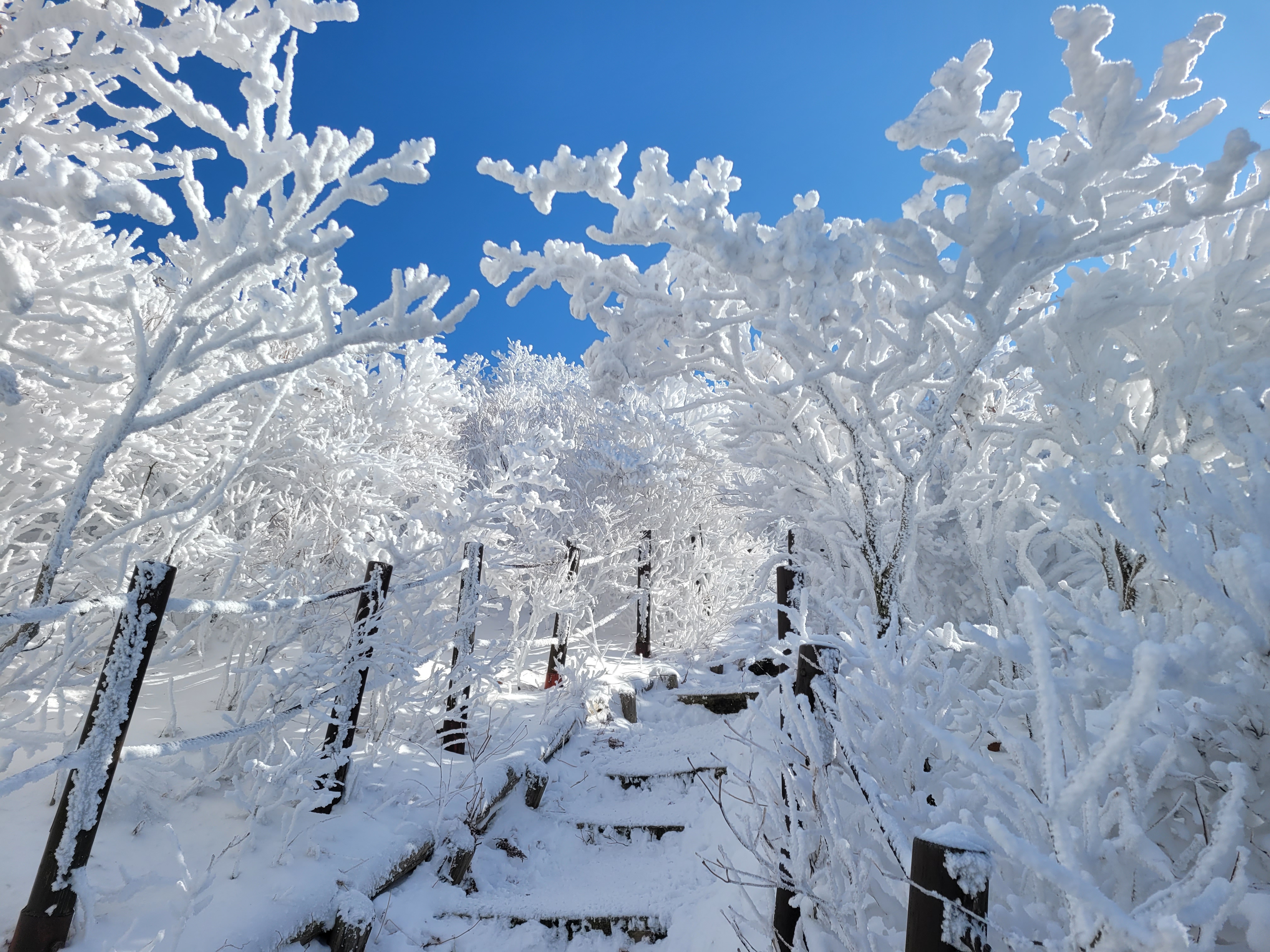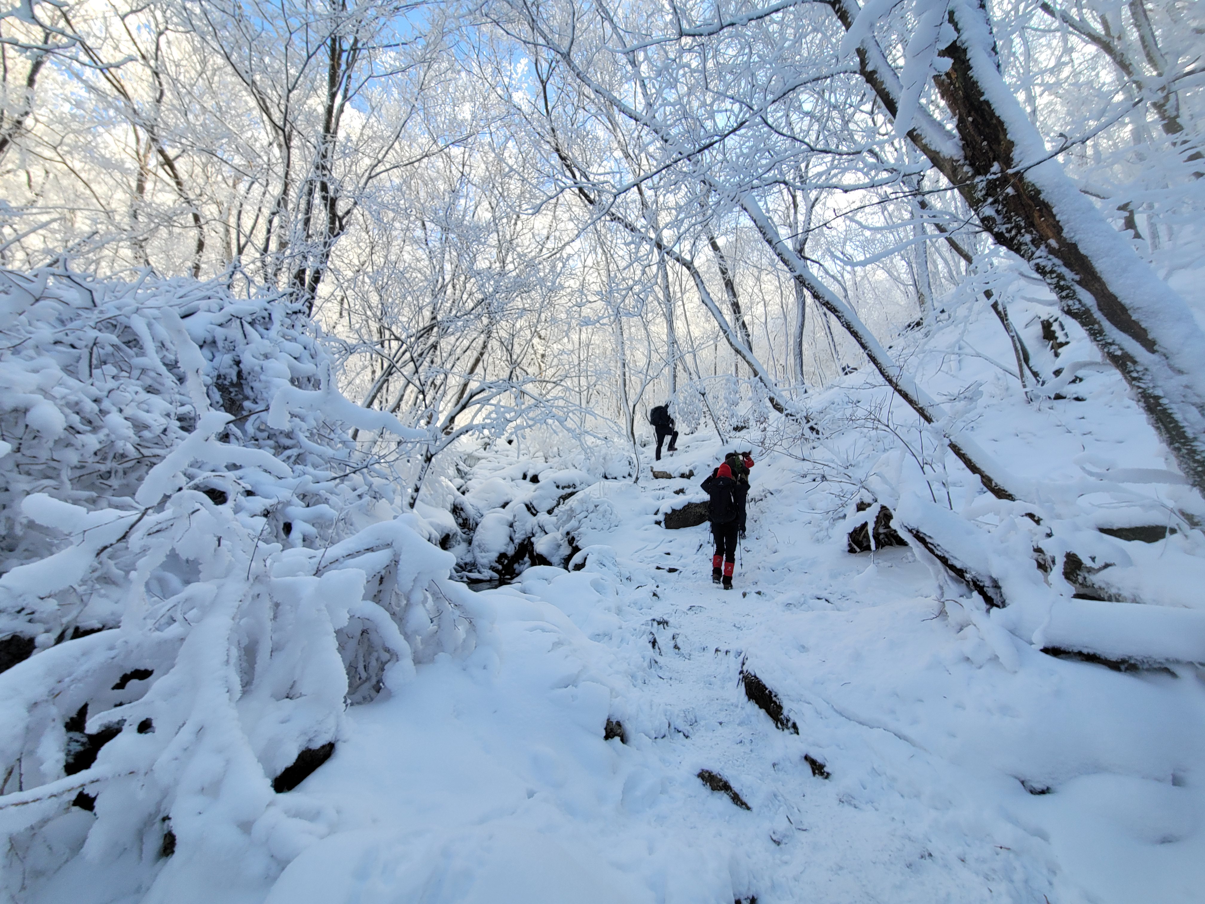 역시 오늘은 완벽한 눈꽃 산행으로 겨울왕국에 들어선 느낌이랄까. 최고의 산행이었다.