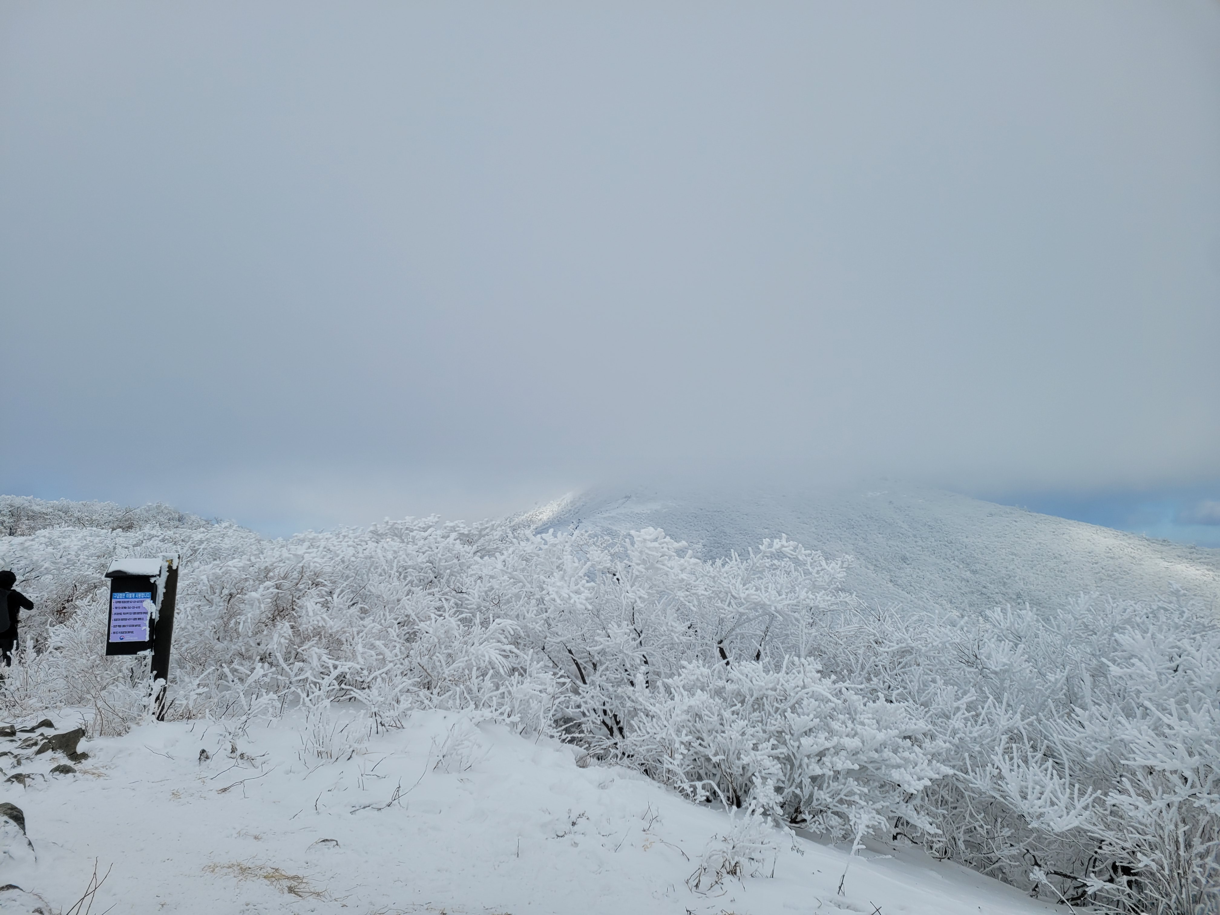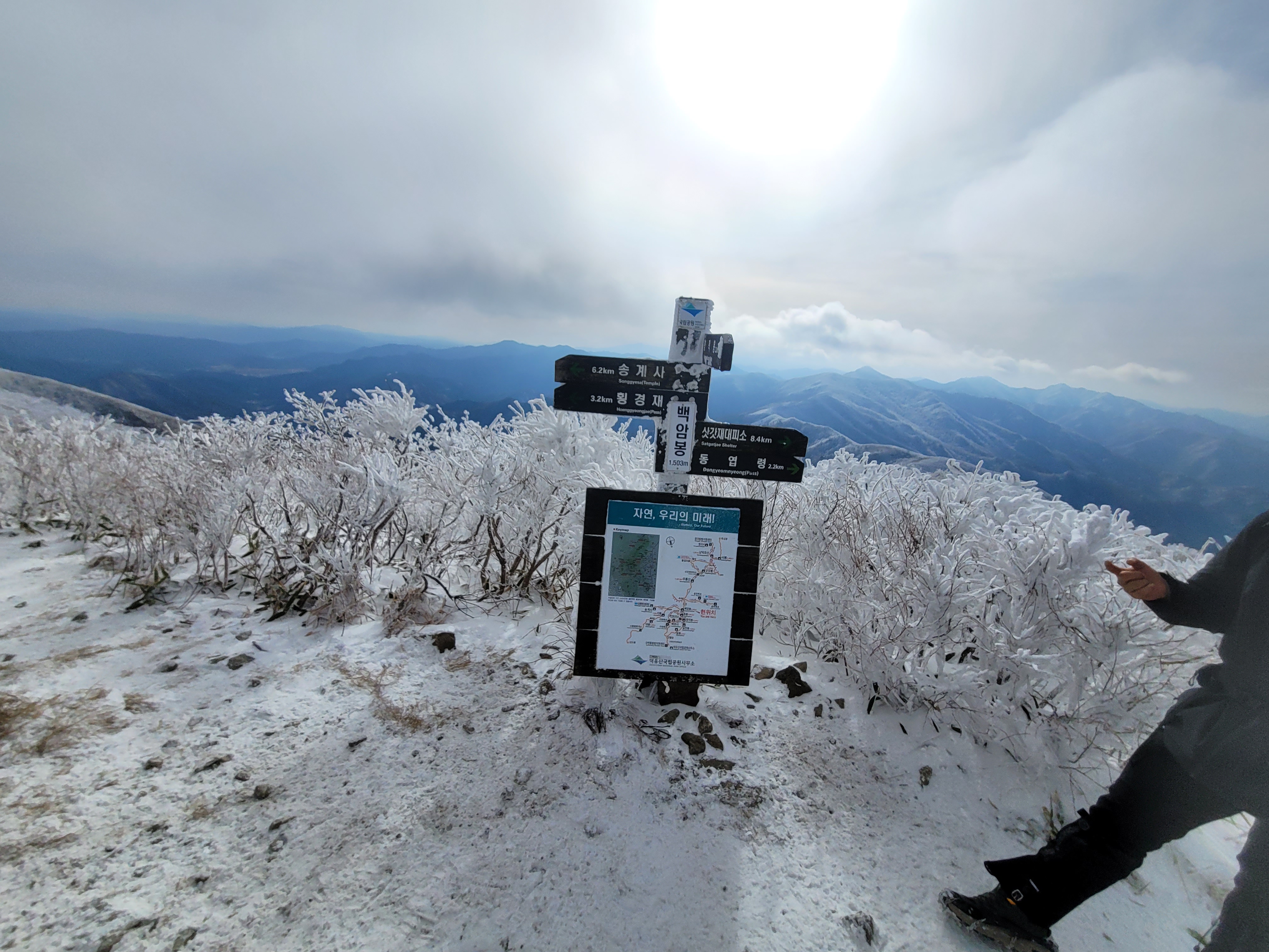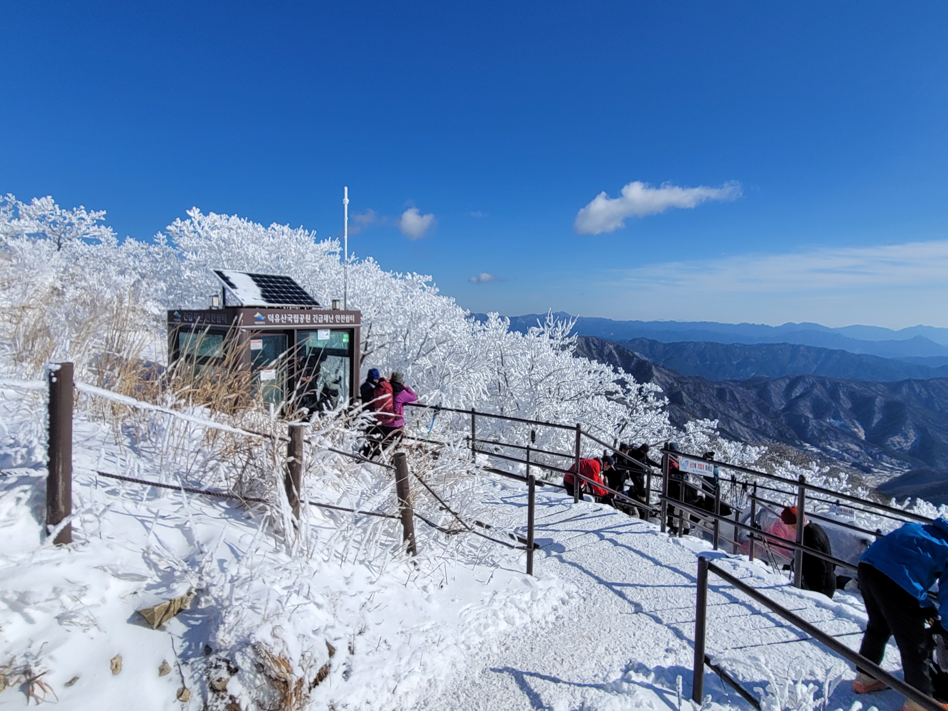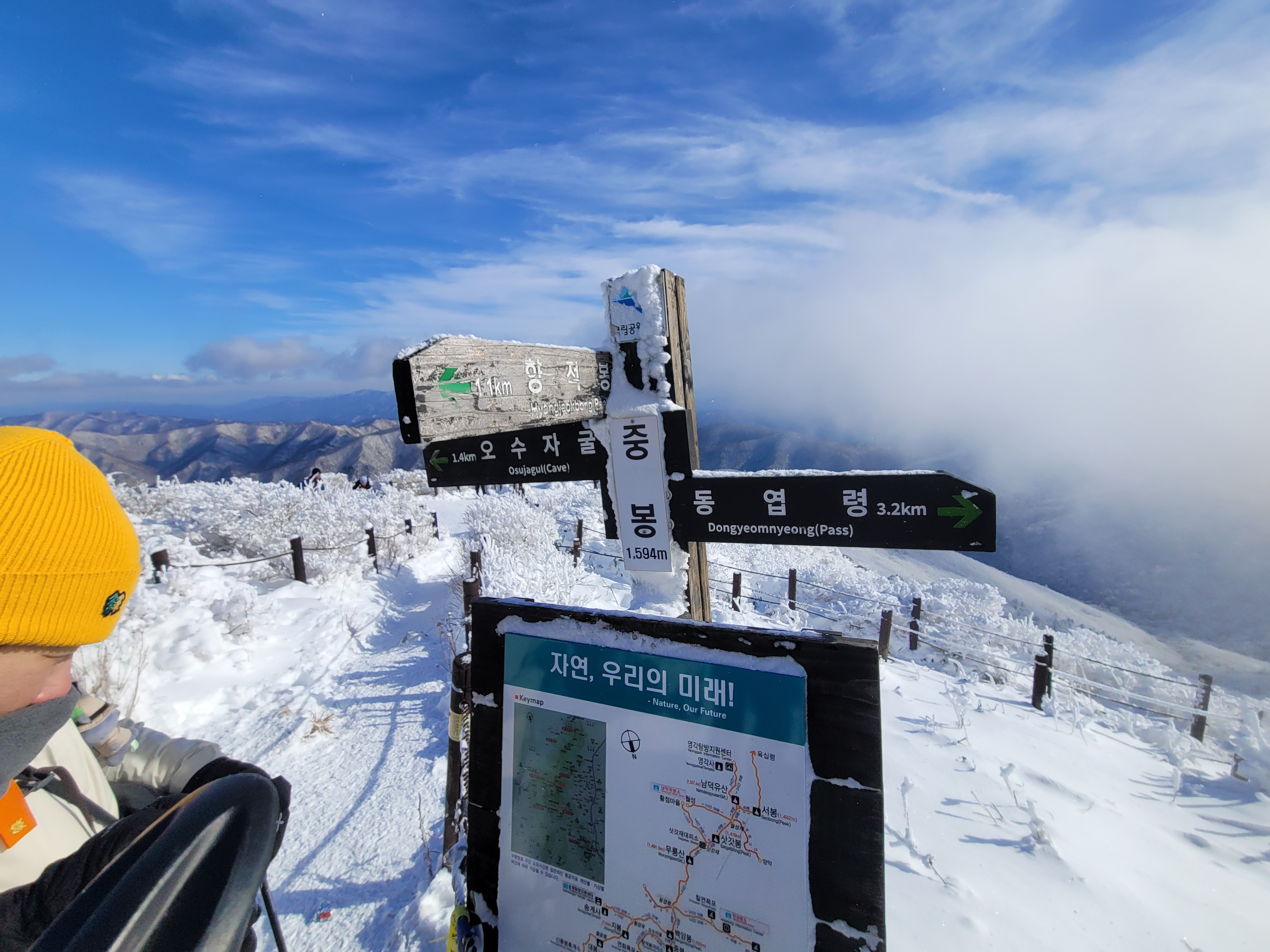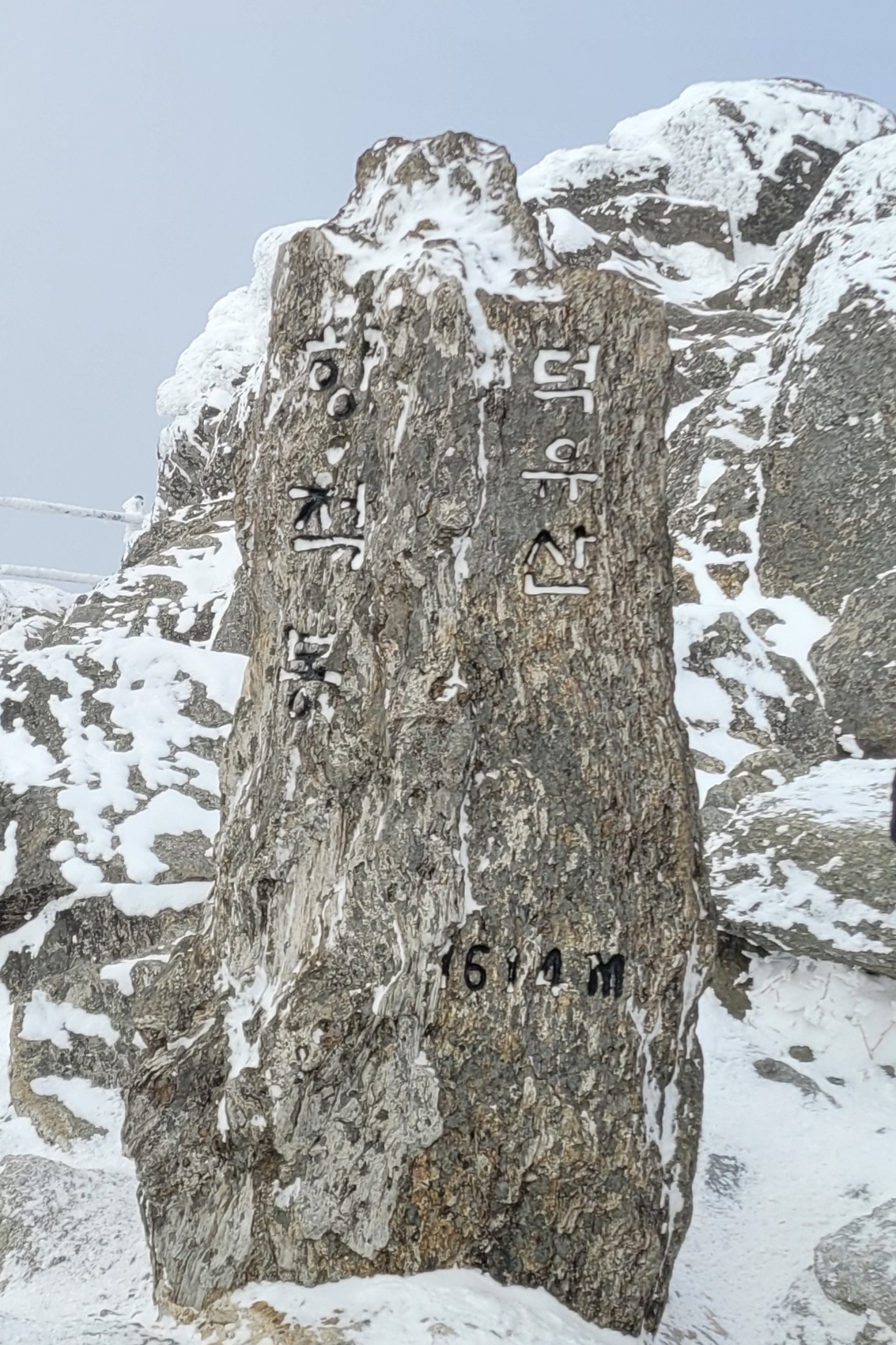 향적봉 정상은 500m아래 설천봉까지 곤돌라를 이용해서 올라오는 여행객들이 많아 정상석 인증사진을 찍으려면 긴 줄을 30분 이상 서서 기다려야 한다. 나는 측면에서 정상석만 겨우 보이게 한 컷.