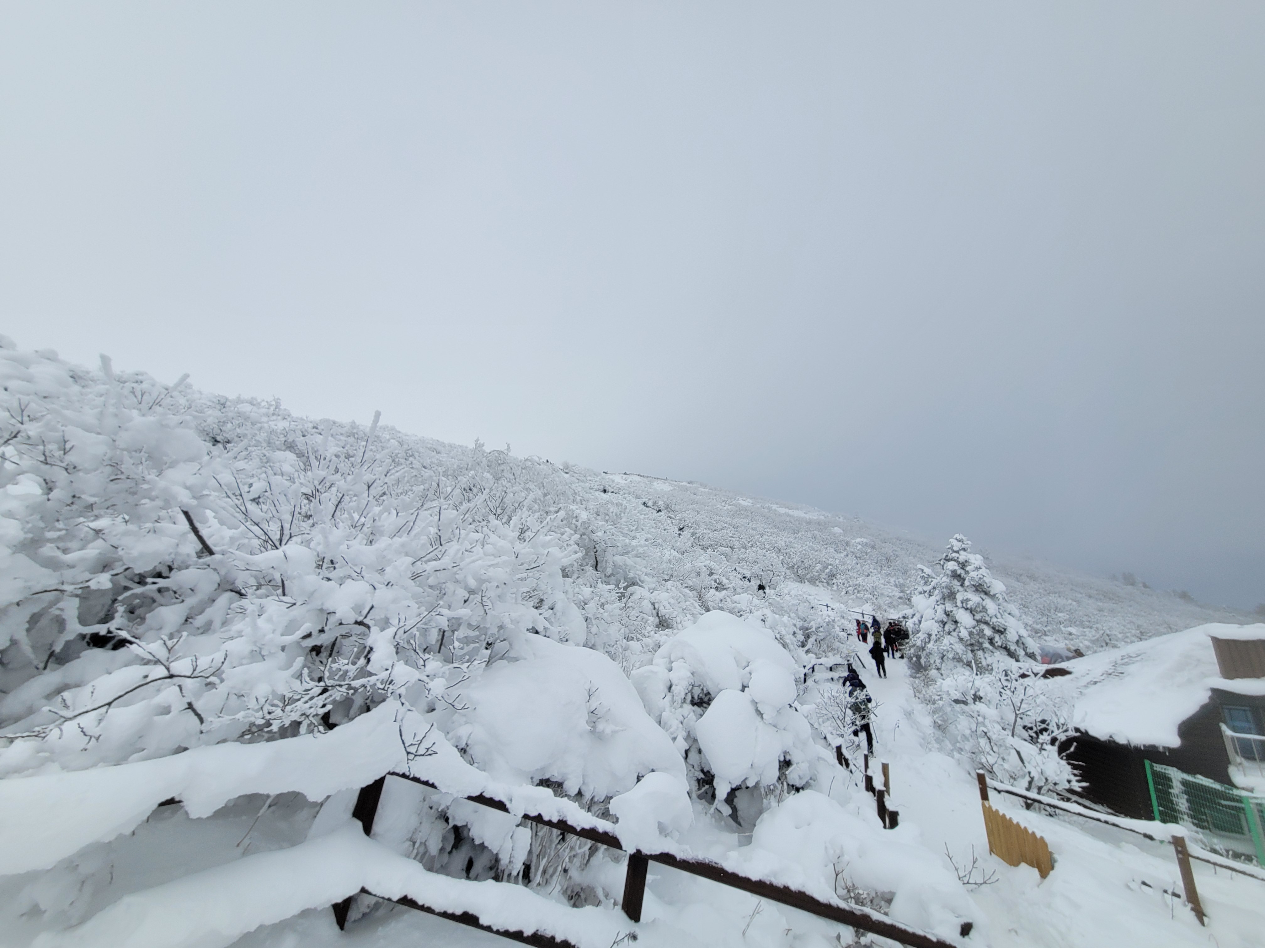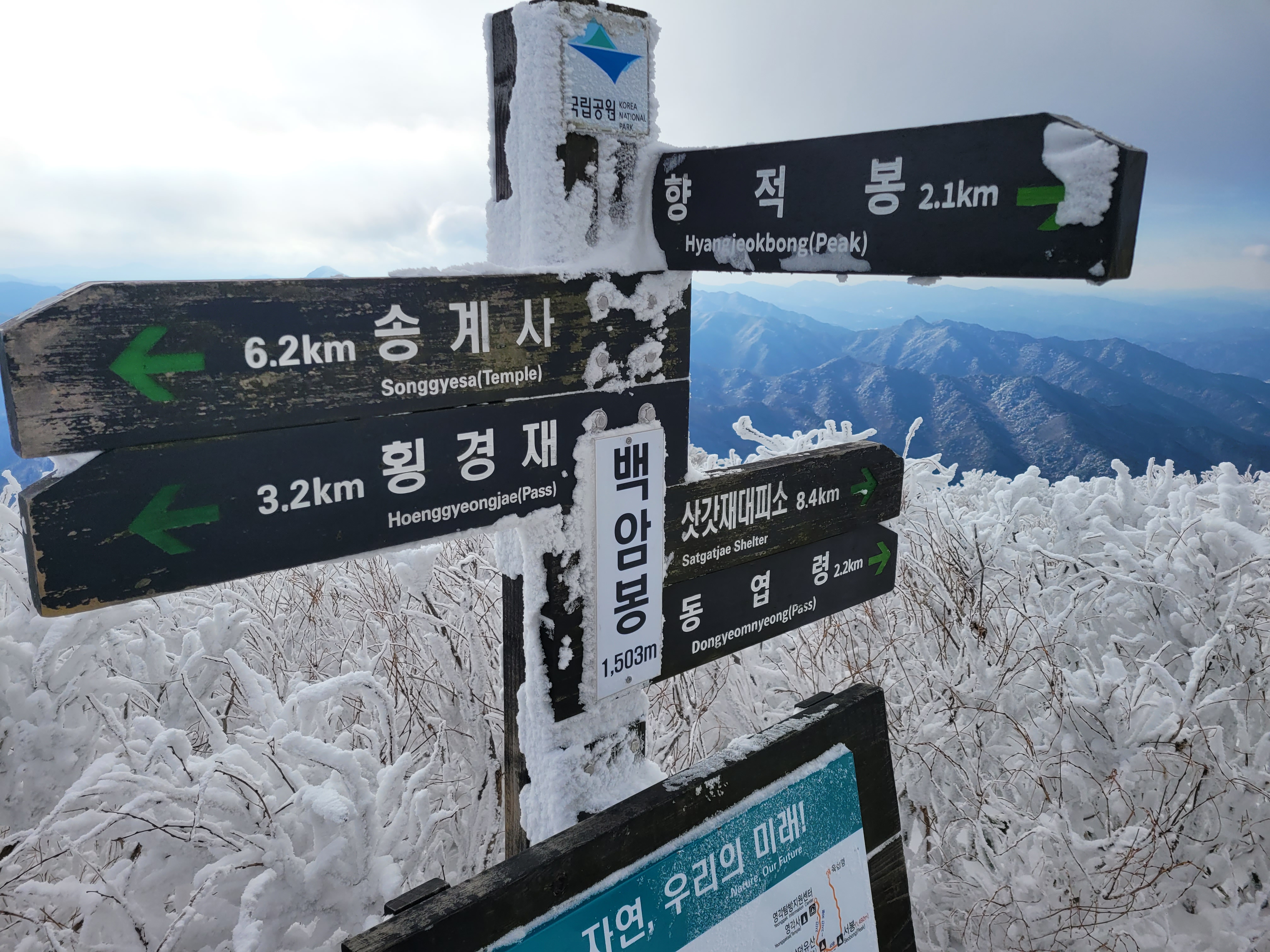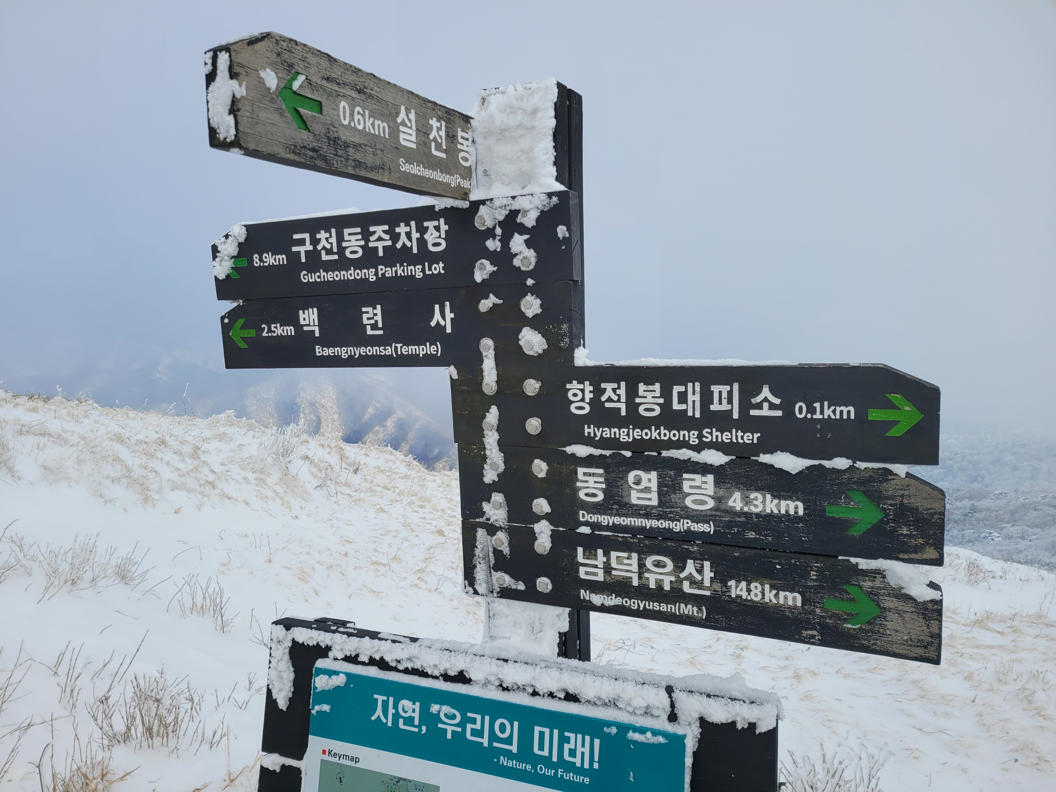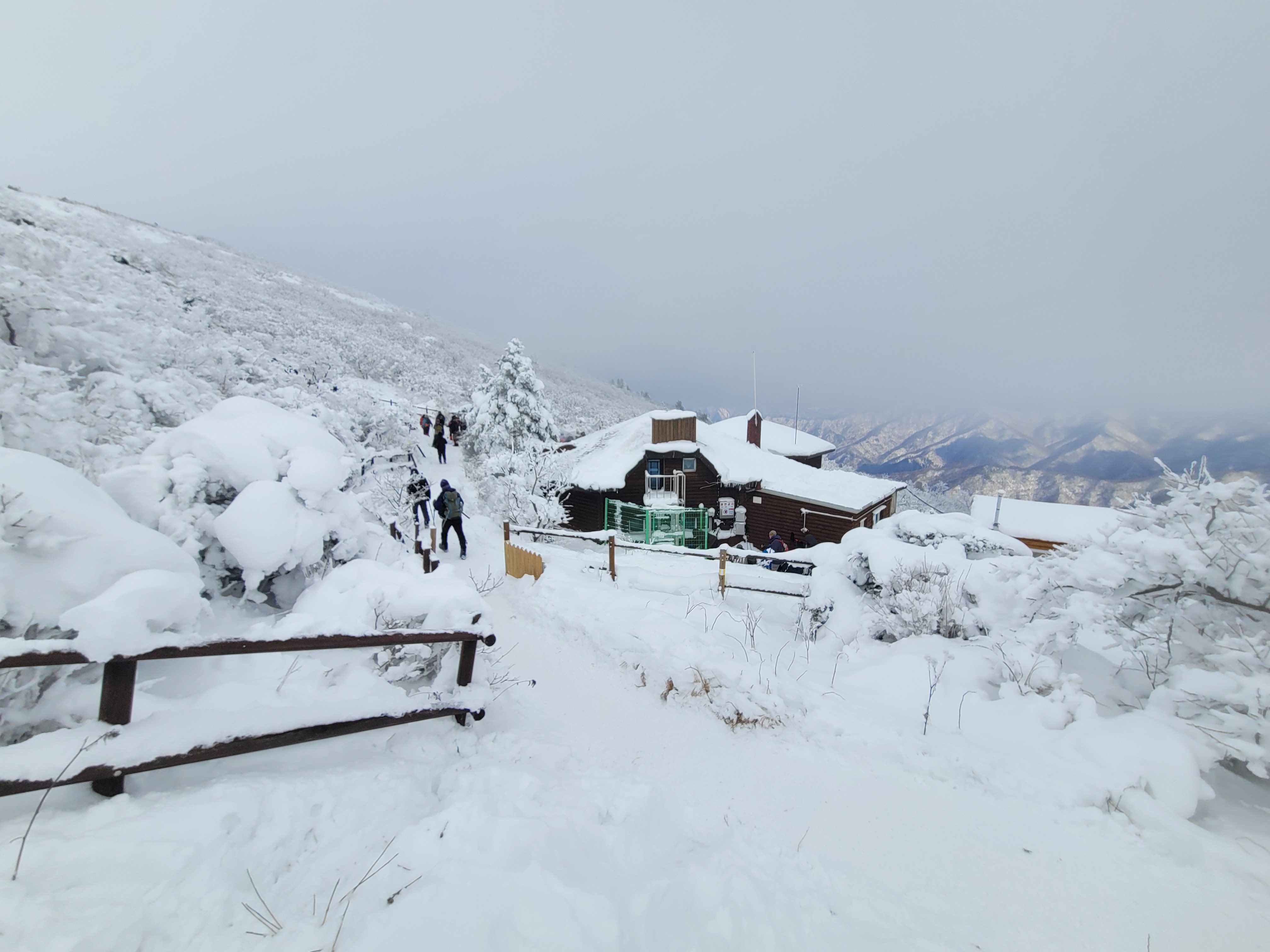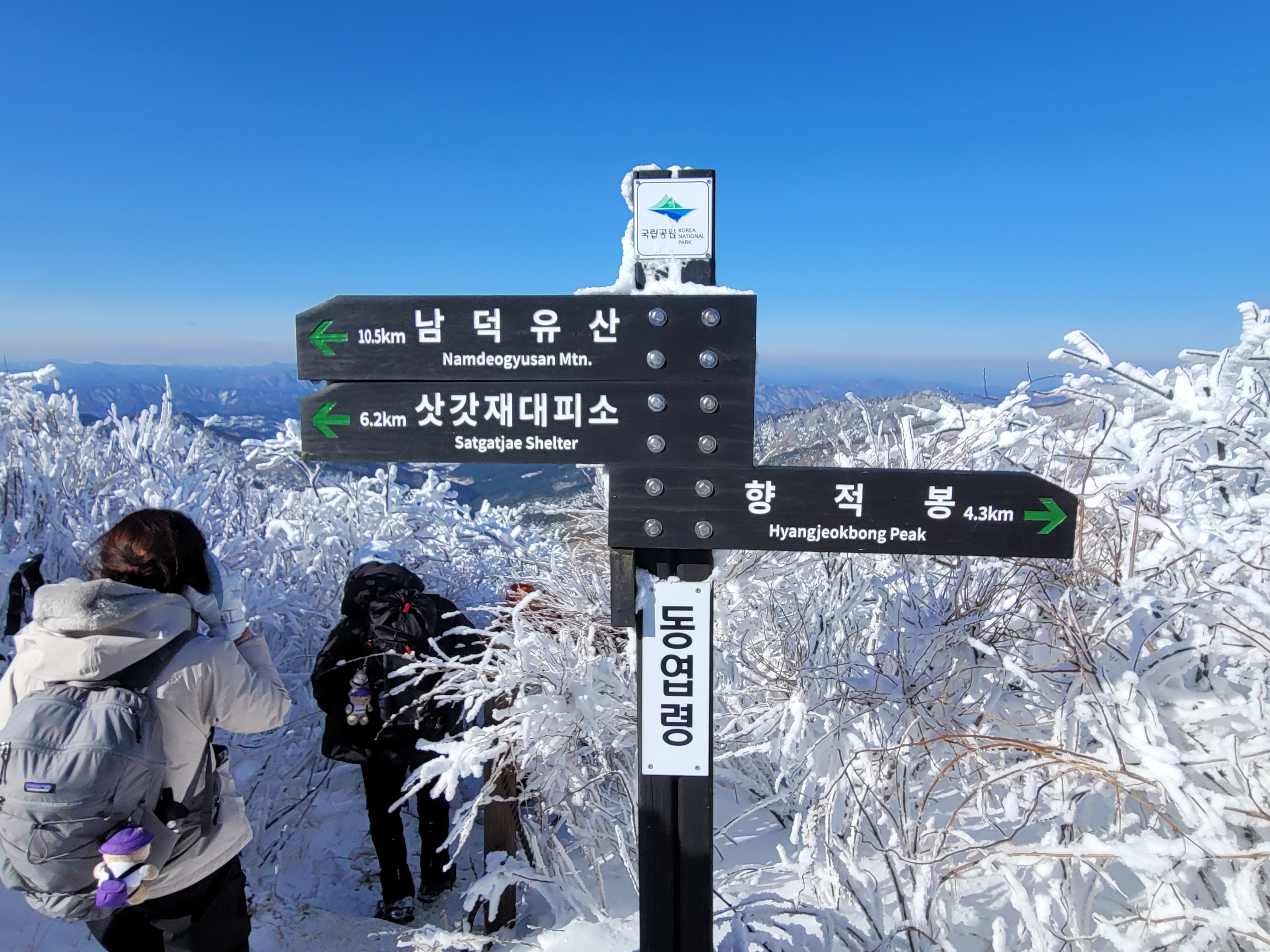 향적봉 정상은 500m아래 설천봉까지 곤돌라를 이용해서 올라오는 여행객들이 많아 정상석 인증사진을 찍으려면 긴 줄을 30분 이상 서서 기다려야 한다. 나는 측면에서 정상석만 겨우 보이게 한 컷.