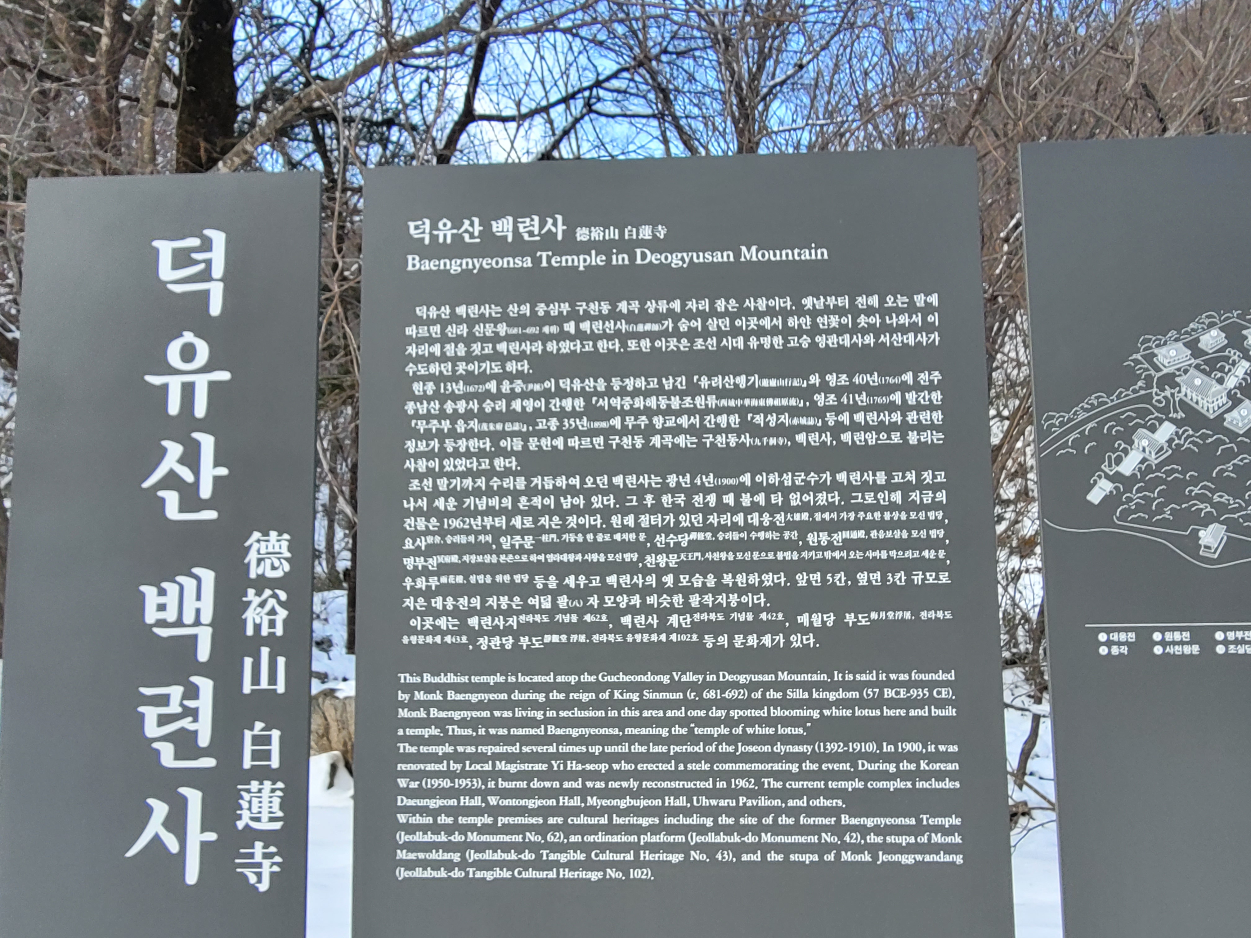 그 뒤 무주구천동이 관광지로 개발되면서 백련사도 복원되기 시작하여, 1967년 무주읍내에 있던 조선시대 무주부(府)의 관아인 동헌(東軒) 건물을 이건하여 요사 문향헌(聞香軒)으로 사용하였다.