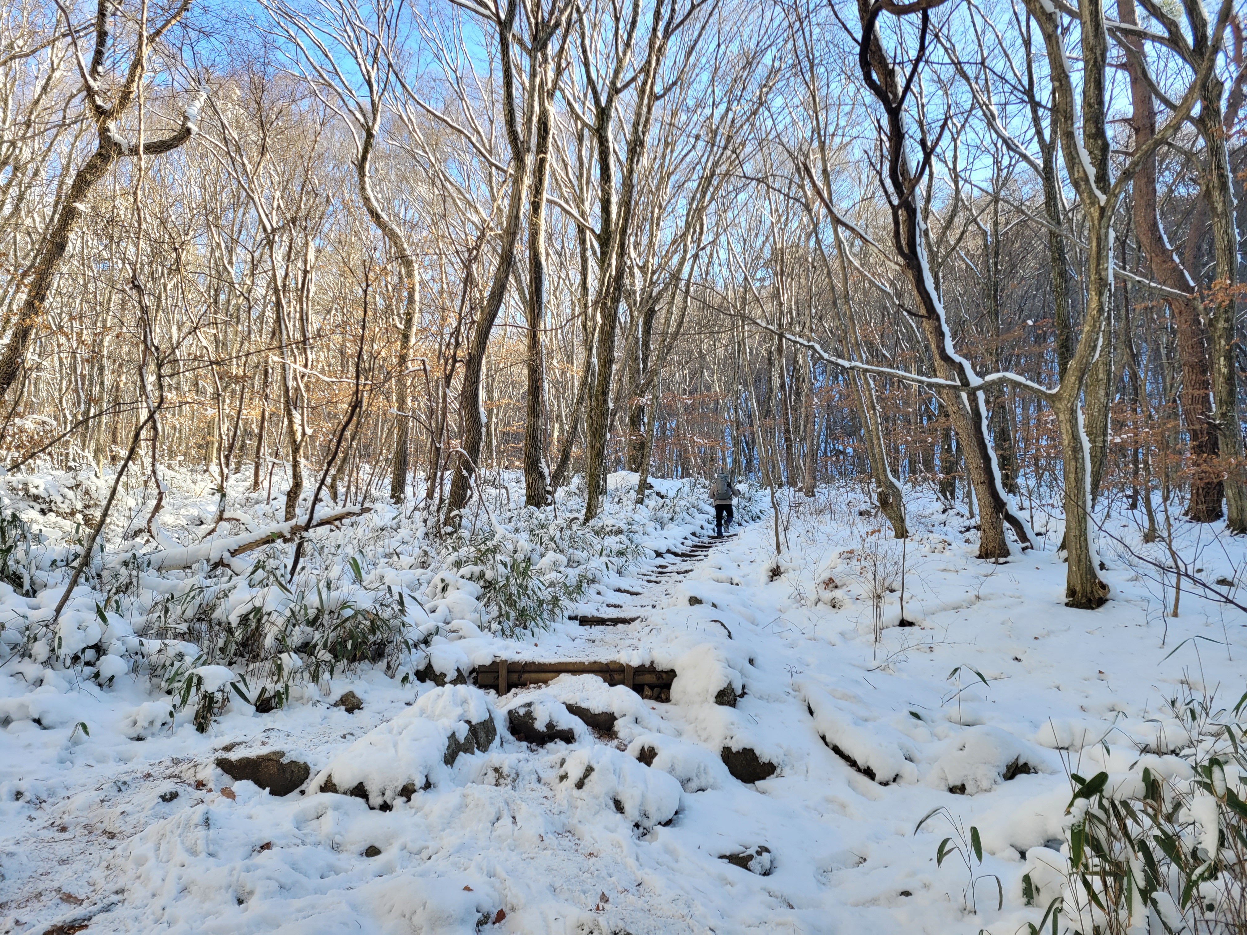 향적봉까지는 아이젠은 착용하지 않아도 충분했고 향적봉에서 백련사까지는 가파른 내려막이라 아이젠 착용은 필수