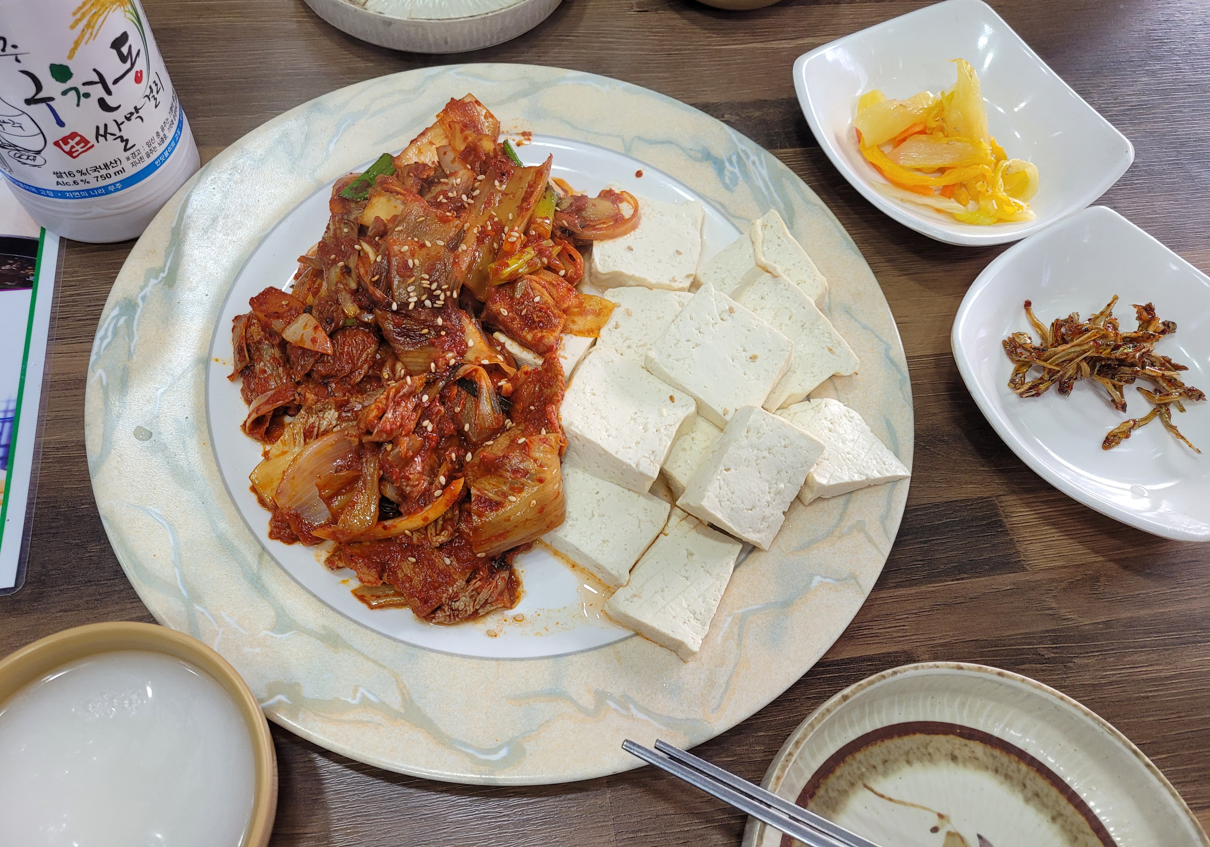날머리로 내려와 식당 한곳을 들어가니 세상에 지금까지 다녀본 명산 식당들중에 가장 비싼 식당이다. 아마 옆 식당도 마찬가지겠지. 산채비빔밥 15,000원, 두부김치25,000원(두부도 직접 만든 손두부도 아니다), 생막걸리가 6,000원.