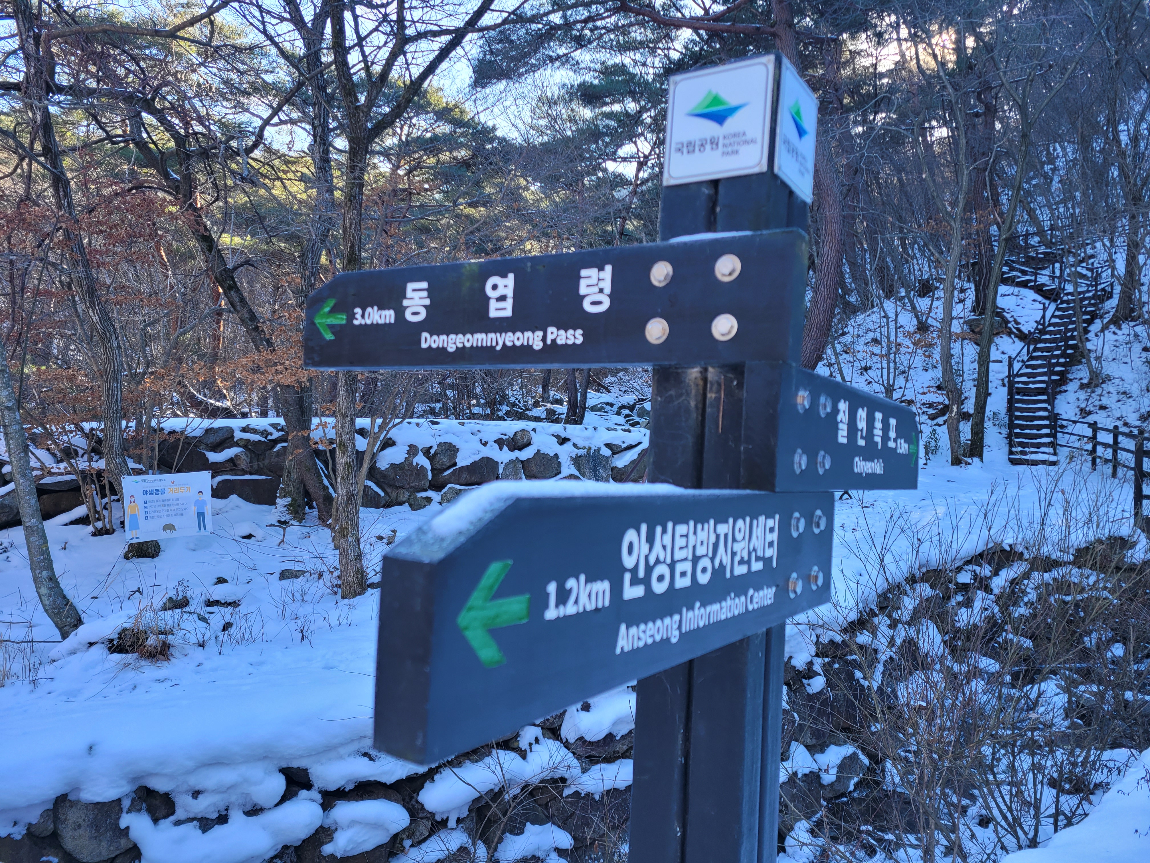 안성탐방지원센터에서 동엽령까지 4.2km, 1시간 30분 소요.