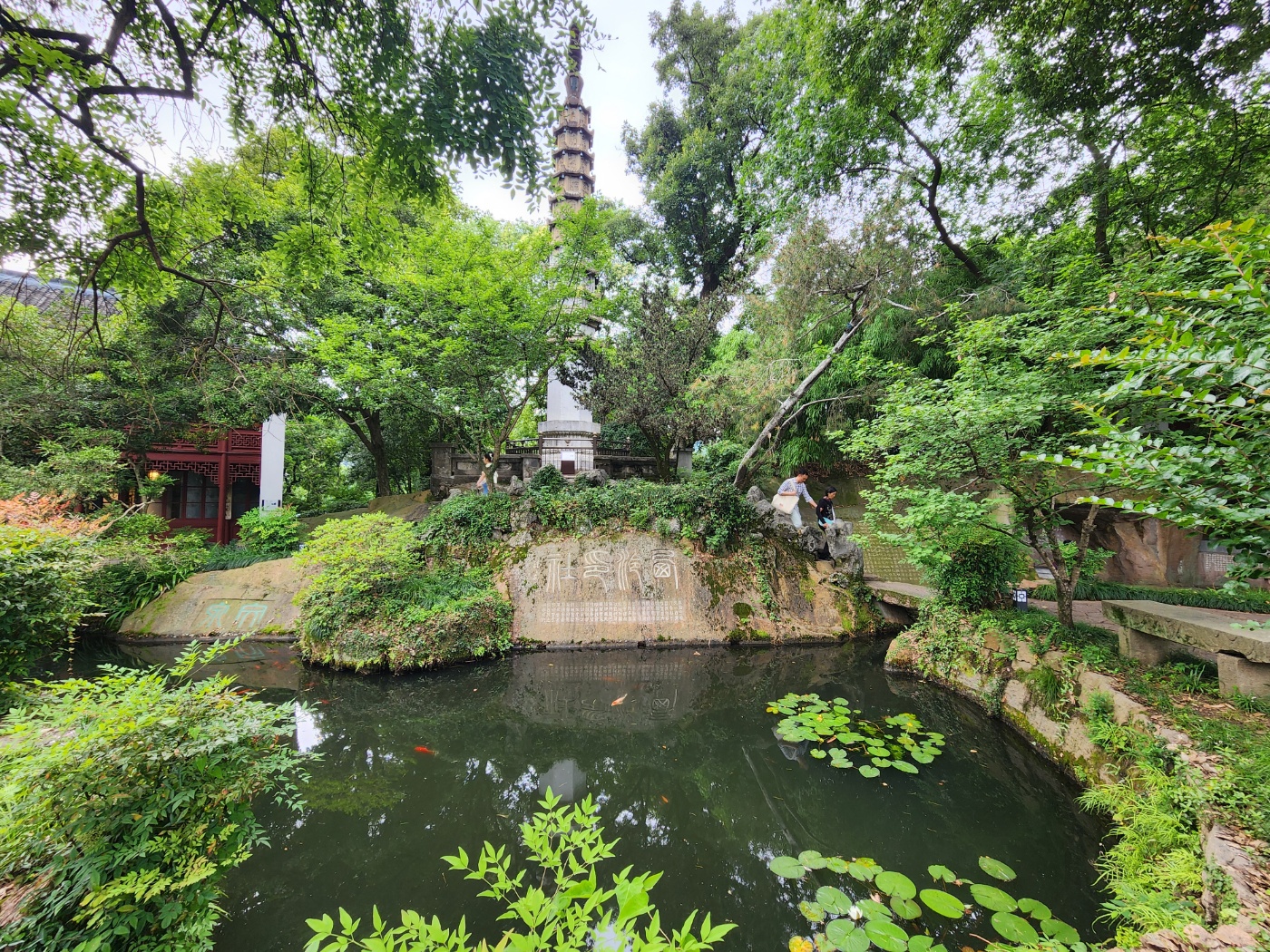 부지면적 7088㎡, 연건축면적은 1749㎡이며, 명·청 시대의 고적(古蹟)과 빼어난 원림(園林)으로도 유명하다. 백당(柏堂)·죽각(竹閣)·앙현정(仰賢亭)·사조각(四照閣)·제금관(題襟館)·관악루(觀樂樓)·환박정려(還朴精廬)·화엄경탑(華嚴經塔) 등의 건물이 지세를 따라 들쑥날쑥 분포되어 있다. 건물 사이에는 인천(印泉)·한천(閑泉)·잠천(潛泉) 등의 샘이 있어 그윽하면서도 운치가 있다. 정자와 누각에는 청나라 때 전각가(篆刻家)로 이름난 정경(丁敬)의 필적을 새긴 석각 등이 있고, 암벽에는 역대 명사(名士)들이 남긴 마애제기(磨崖題記)가 있다. 또 삼로석실(三老石室)에는 동한(東漢) 때의 〈삼로휘자기일비(三老諱字忌日碑)〉와 역대의 비각(碑刻) 등 가치 있는 유물들이 보존되어 있다. 2001년 6월 근대 및 현대 사적으로서의 중요성과 건축의 대표성을 인정받아 전국중점문물보호단위로 지정되었다. (두산백과 참조)
