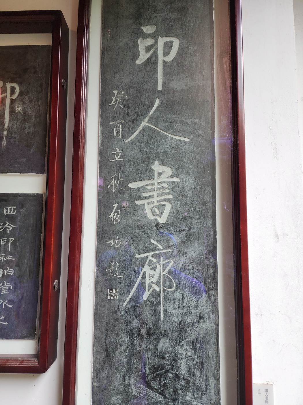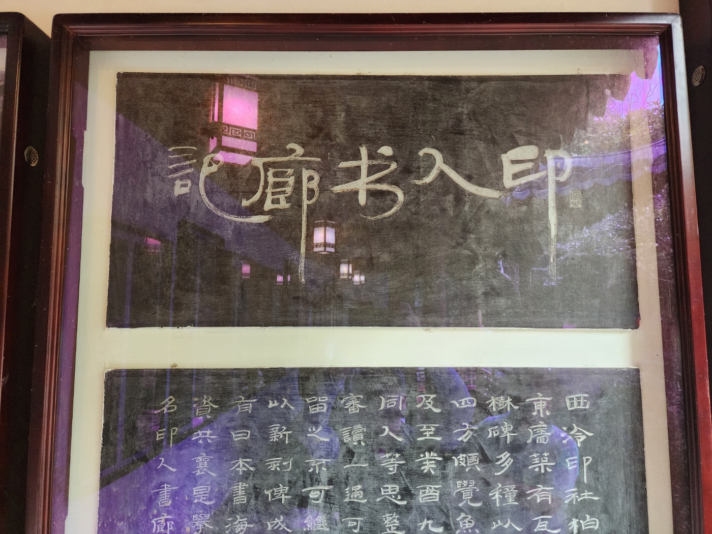 서령(西泠)은 산수가 맑고 좋아서 사람들이 재예(才藝)가 많으니 서화(書畫) 외에 전각(篆刻)으로 유명한 사람이 정두정(丁鈍丁)으로부터 조비암(趙悲盦)에 이르기까지 10여 인이 있어 그 유풍(流風)이 남아 고루 내엽(來葉)에까지 끼쳤으니 인학(印學)자로 말하더라도 지금 서령(西泠)이 가장 성행(盛行)하였다. 뜻을 함께한 사람들이 단체를 만들고 아울러 둔정(鈍丁)과 비암(悲盦) 등 여러 선생들의 상(像)을 돌에 새겨서 우러러 사모(思慕)하고 관마 (觀摩:모범으로 하여 배움) 할 곳을 만들었으니 이름하여 서령인사(西泠印社)라고 했다.