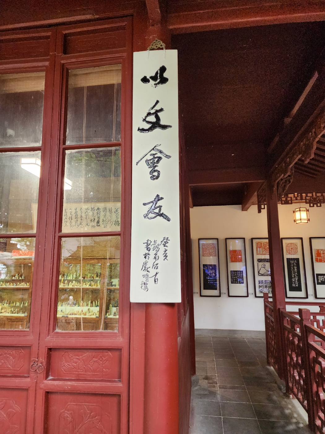고산(孤山)이 있는 유람선 선착장에 내려 서호를 바라보며 걷다보면, 좌측에 누외루(樓外樓) 고급 식당이 나오고, 약 500여 미터 정도 걷다보면, 좌측에 서령인사(西泠印社)가 나온다.