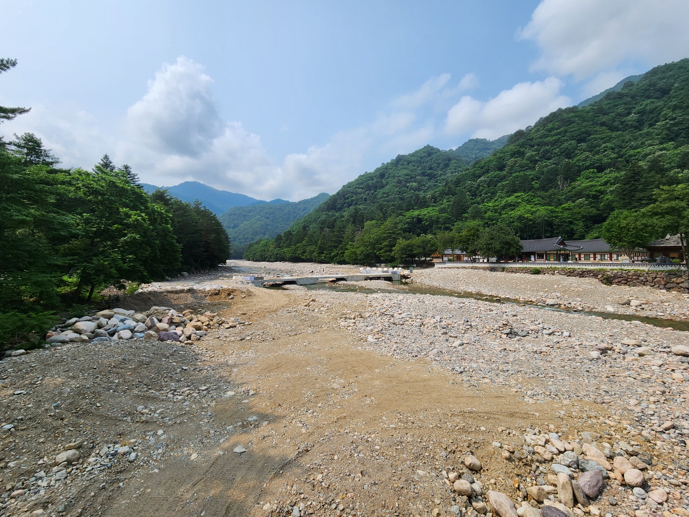 백담사는 계곡이 참 아름다운 곳이네요. 셔틀버스를 타고 계곡을 돌아돌아 들어가니 넓은 평지가 나오면서 백담사가 등장을 하네요.