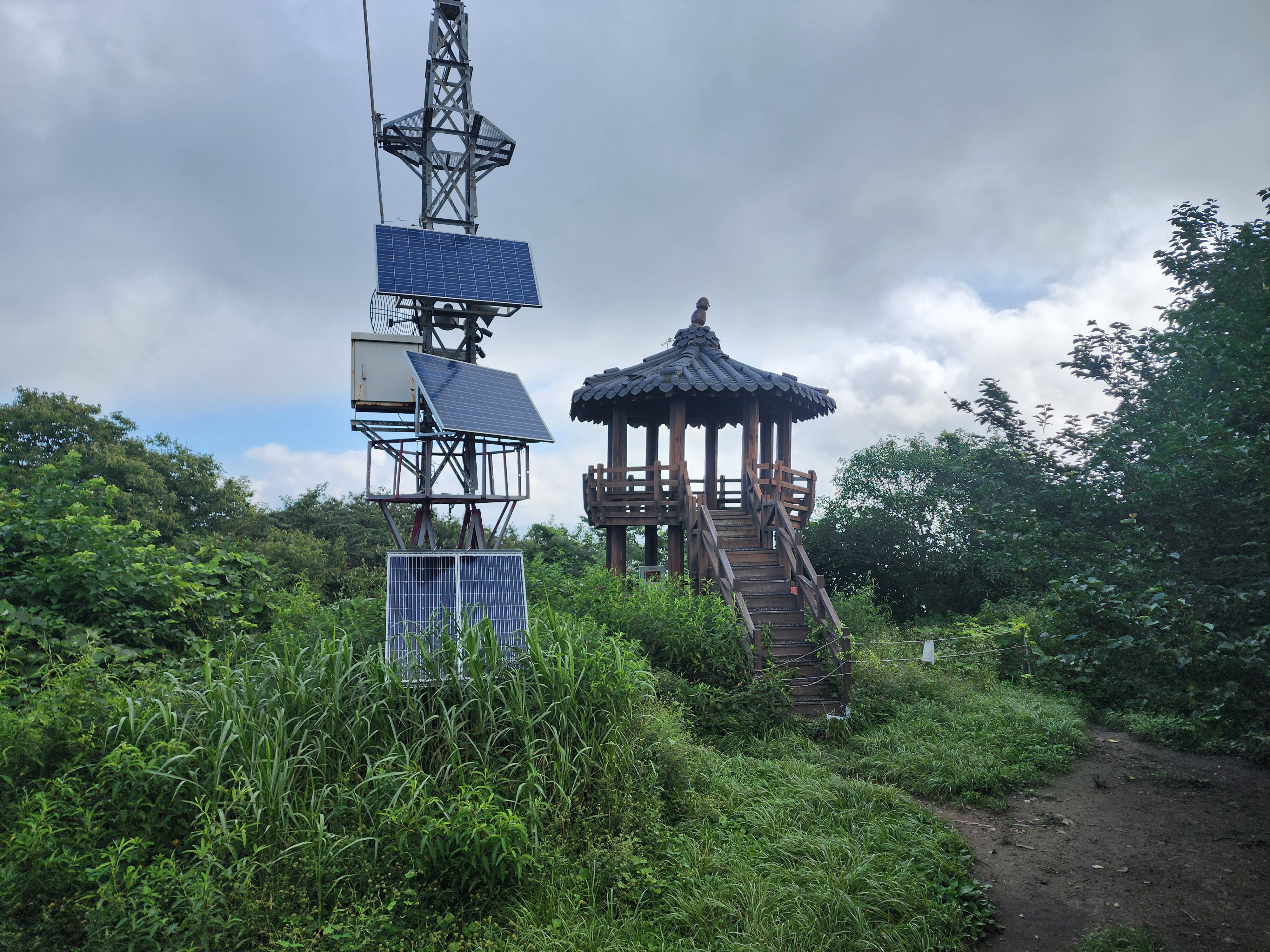 정상에 올랐으나 뷰를 볼 수 없어 할 수 없이 올라가지 못하게 줄로 막아놓은 전망대를 올라가 보았다.
