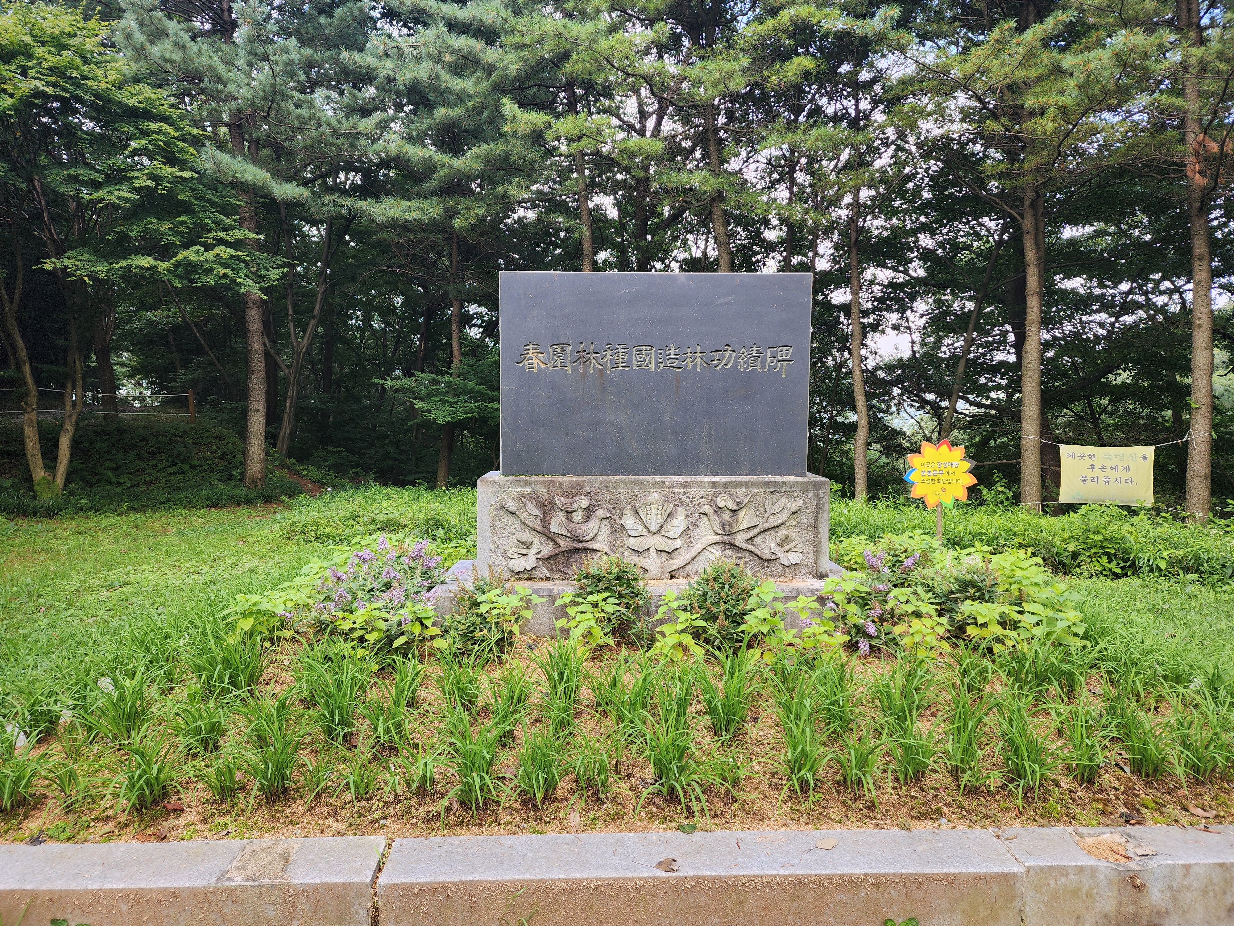 축령산은 공적비 옆으로 나 있는 편백나무숲길을 걸으며 산림욕을 하기 위해 많이 찾는다.